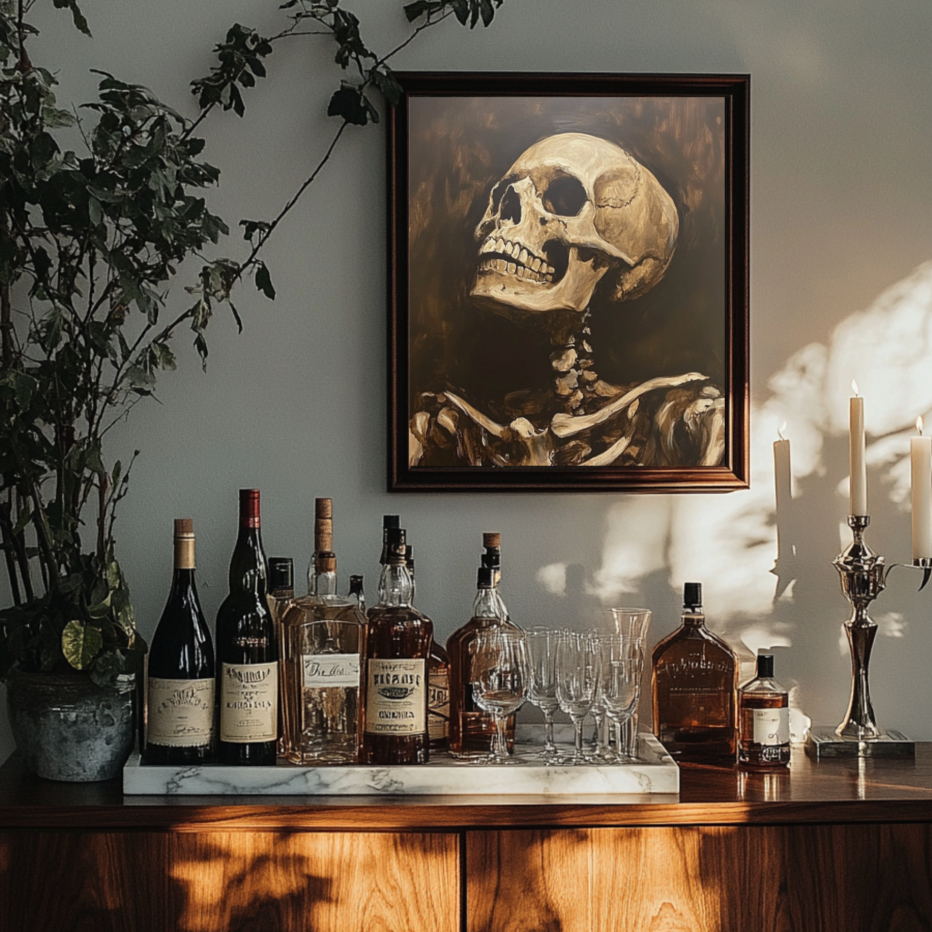 Your fireplace is prime spooky real estate. Layer garlands, taper candles, and faux cobwebs for that perfectly eerie-but-elegant look.