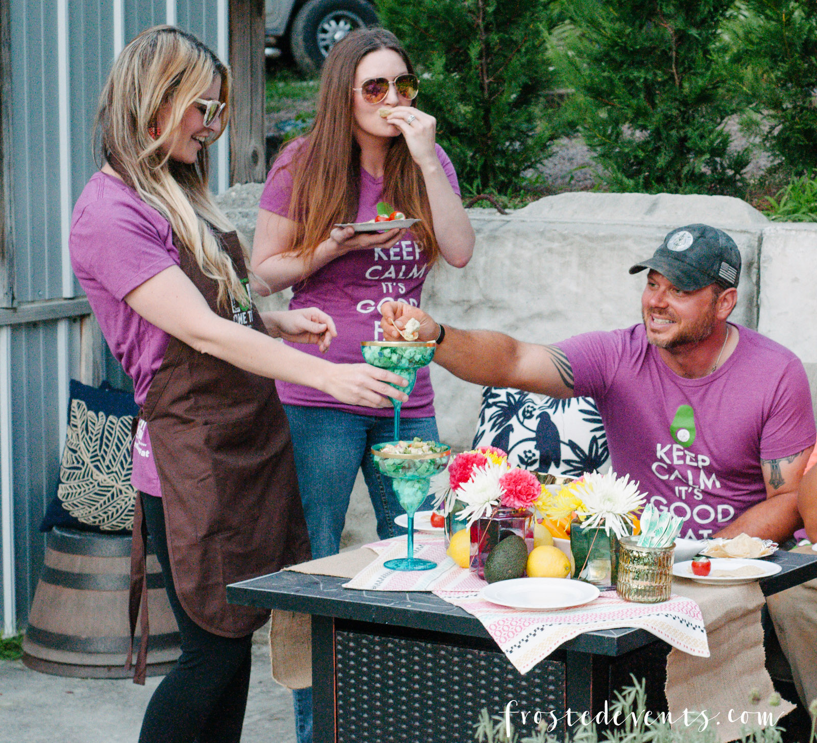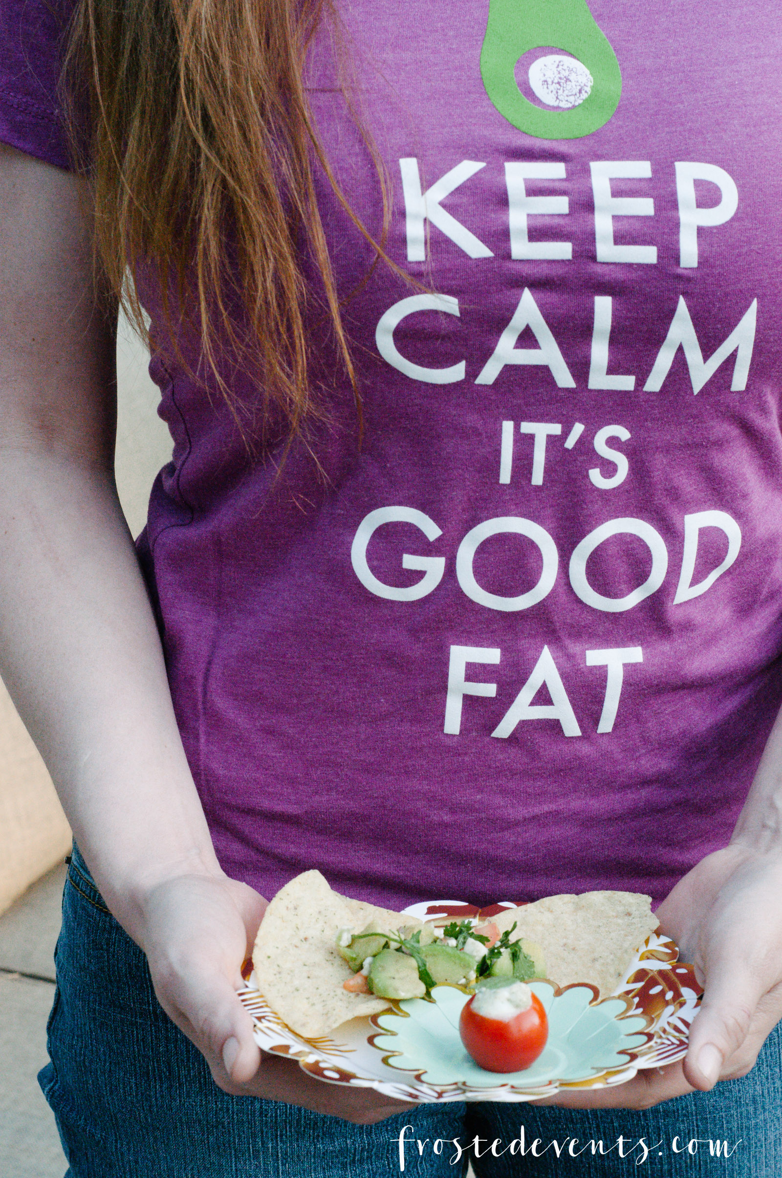 So we were all excited when we opened up our surprise box filled with fun avocado goodies to get the party started. Perfect timing too, since we’ve been wanting to have a little in-home party to welcome over a few of our new friends and neighbors. How cute are these purple avocado shirts? Even my husband jumped in on the fun and asked for one!
