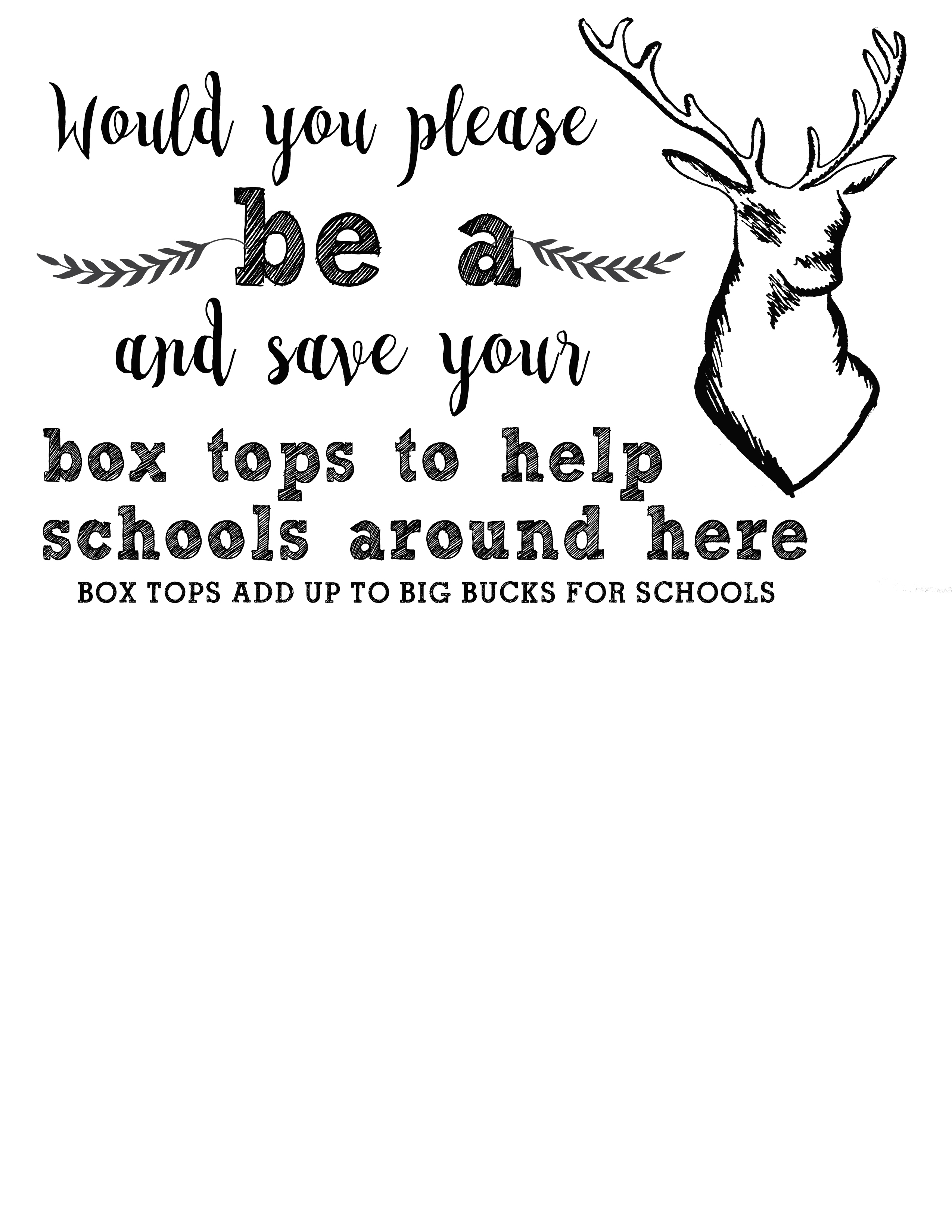 Wanna use our Box Tops = Big Bucks system? You can download the printable pages here