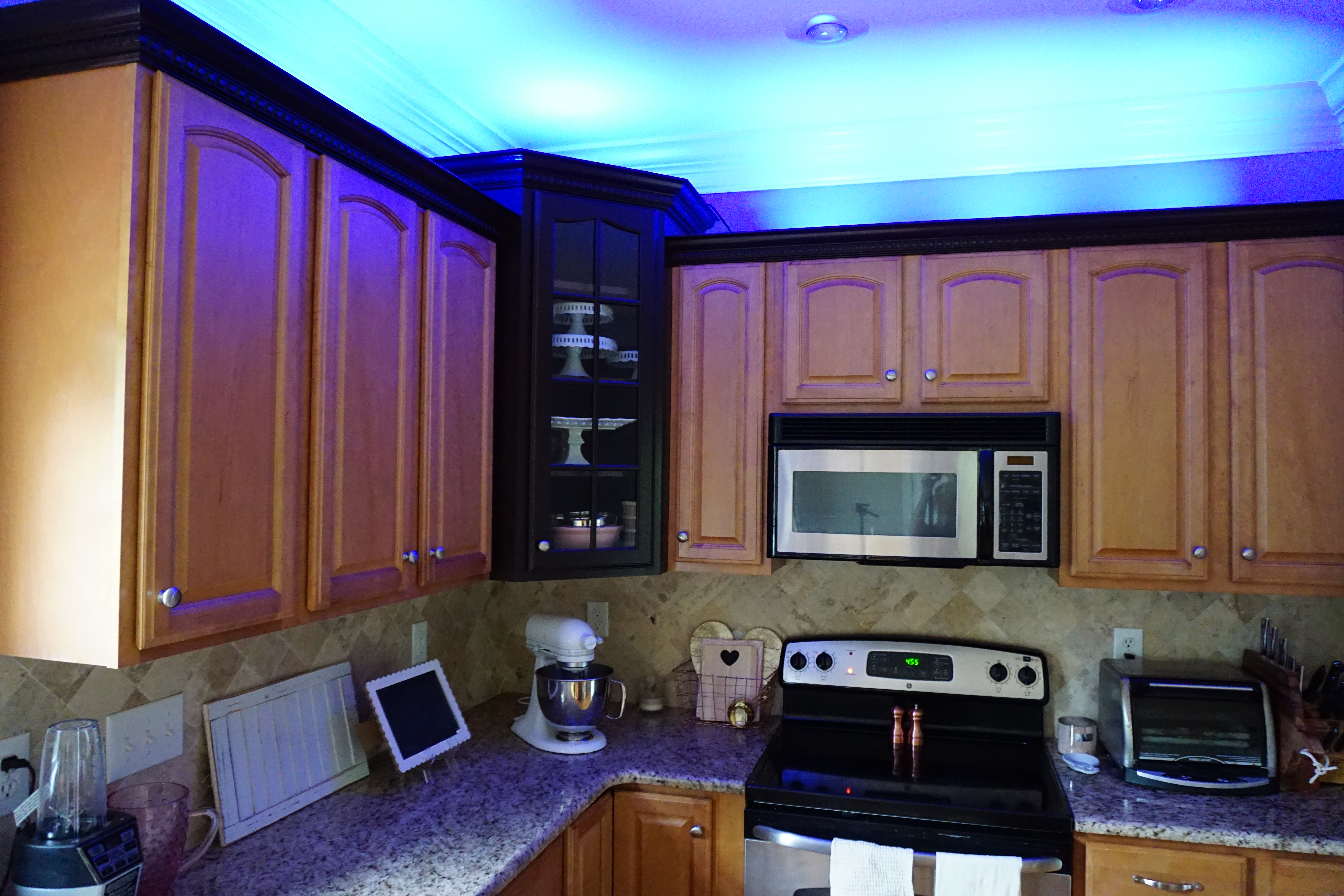We decided to try them out in our kitchen and add lighting above our cabinets. Our kitchen doesn’t get a lot of light coming in from the main window over the sink so I thought these would be a great way to brighten up the space. Plus I wanted to see how the color options would turn out so I could get ideas for the holidays. Building a new home for the holidays is essential as the kids have broken up from school so I will need to entertain them and there will be no room in the house to get any jobs done but that means more quality family time which is great! Perhaps you are thinking of doing some work on your house before the holidays or maybe you are thinking of buying a new home all together, you may want to check out some mortgages online to help you decide, mortgage comparison sites are great so you can see which is the best deal for you! You can even put your brand new lights in your new home…