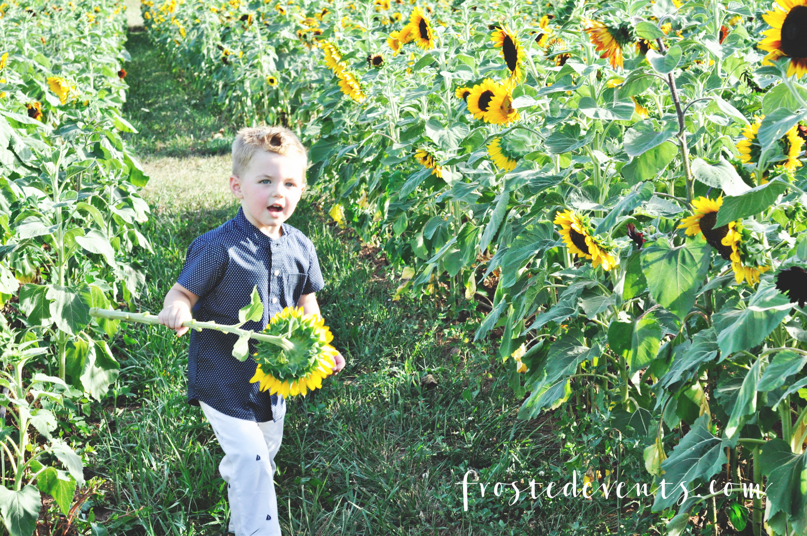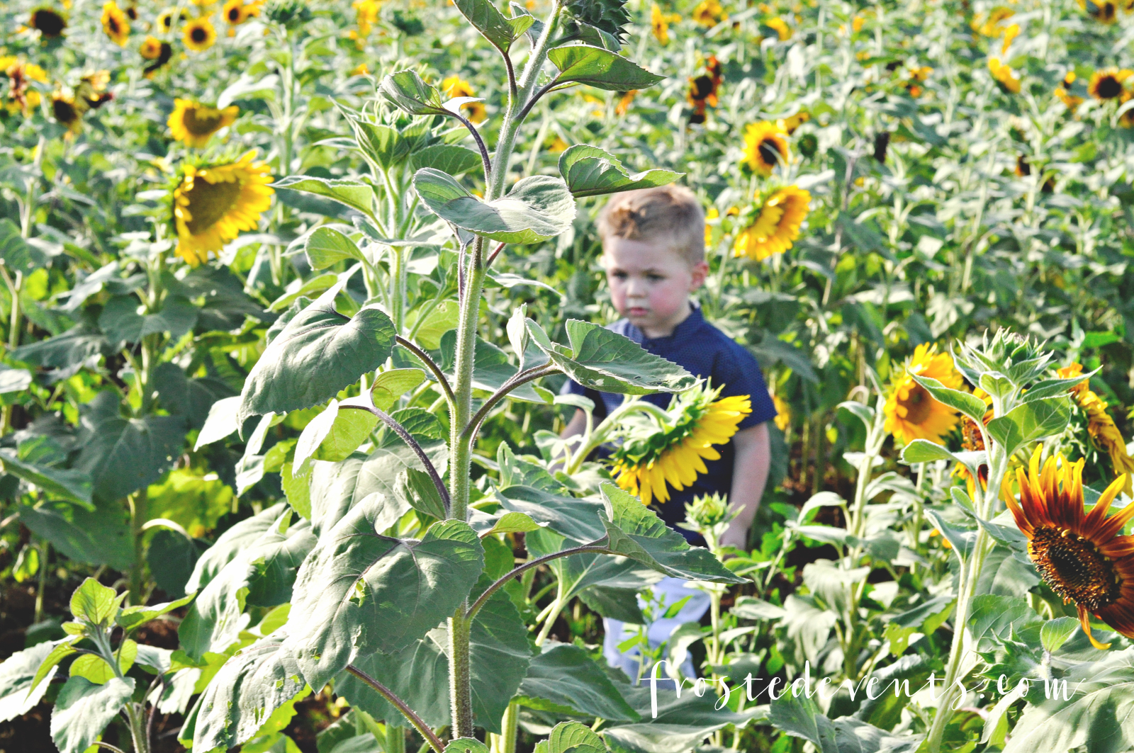 He was a little afraid of the bees. When he saw one he would run and hold on to me, yelling “the bee almost got me.” They also have a big sunflower maze with sunflowers that were a couple of feet taller than me.