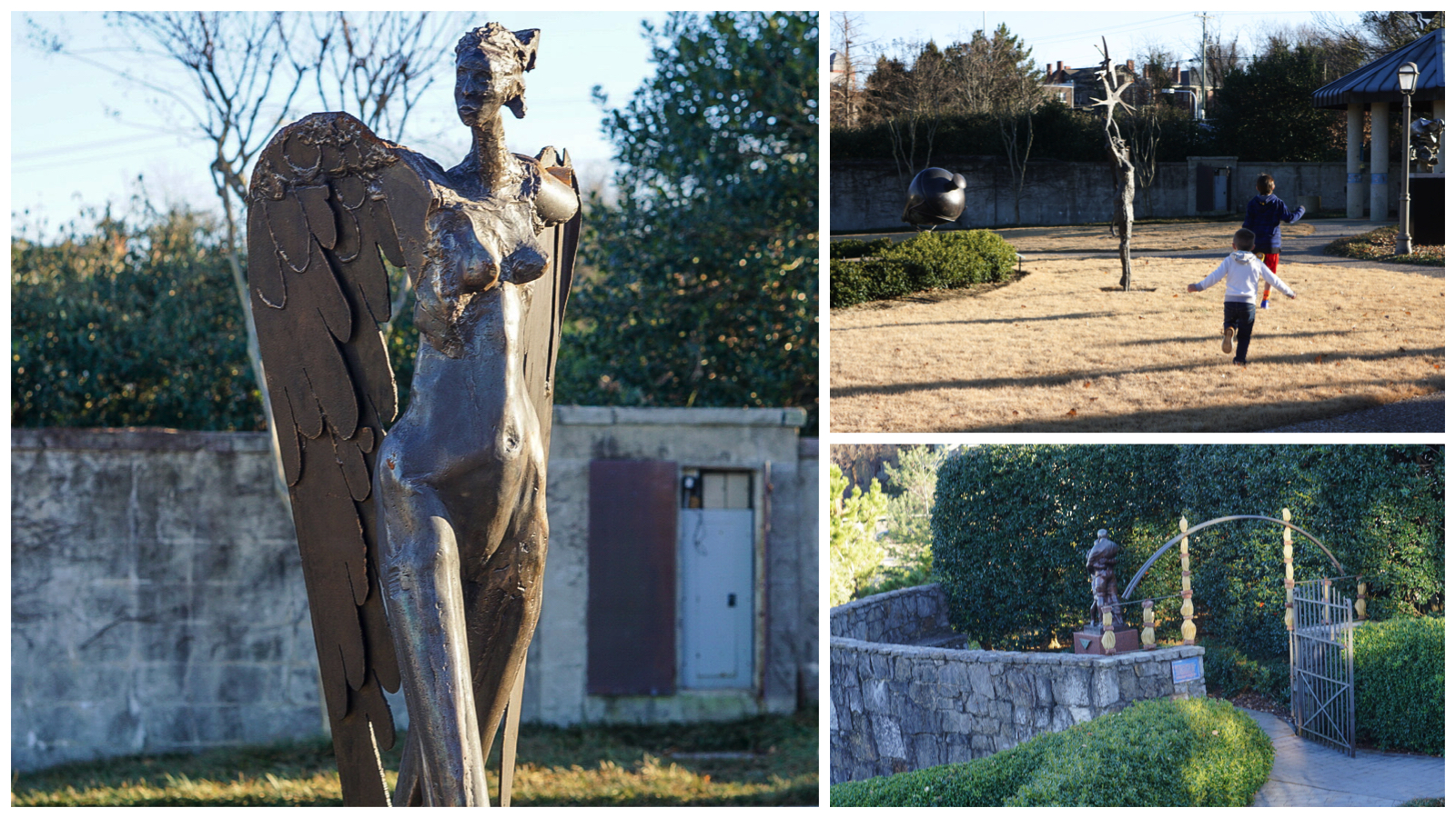 Coffee in hand we strolled the Bluff View Art District and explored all that it has to offer. It was fun to see all the beautiful artwork and sculpture on display inside the River Gallery. The blown glass hanging in the window was a favorite of mine and the kids got to try their hand at making music. Wandering down cobblestone streets we ventured through all the nooks and crannies to find hidden works of art.