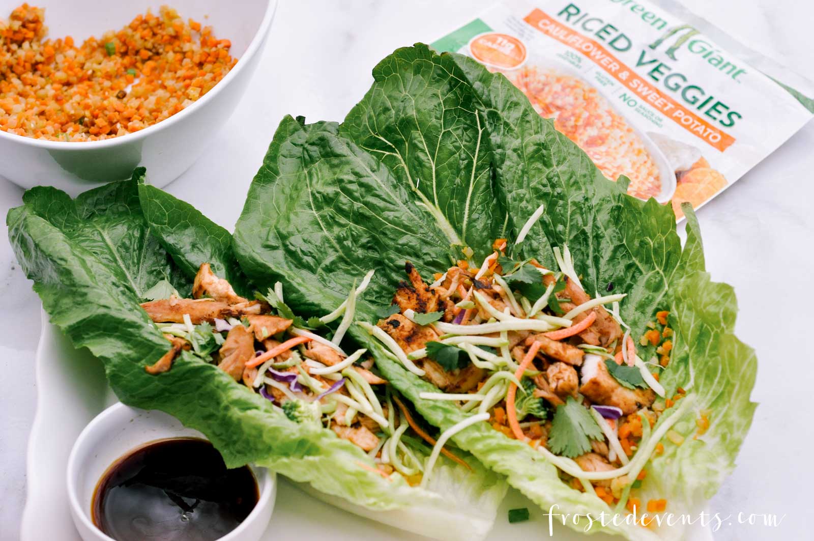 Chicken lettuce wraps with cauliflower rice, a delicious dinner idea your family will love!