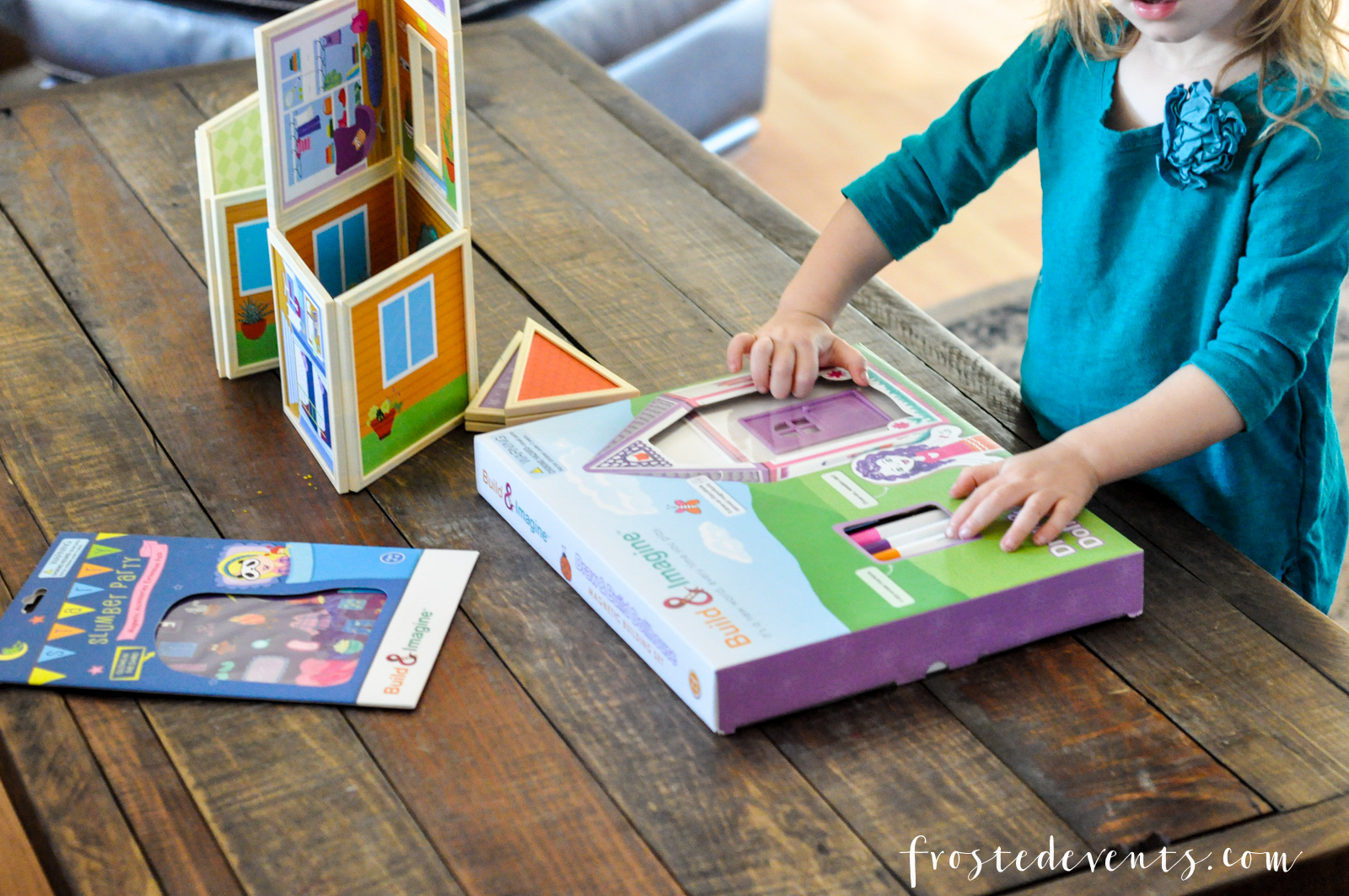 If you’re looking for the perfect gift to give any little girl this Christmas, this is it! Build & Imagine makes illustrated magnetic building sets, kinda like a cross between a dollhouse and building blocks. There are eight different playsets to choose from, each with it’s own theme and storyline. We recently tried out one of the most popular sets, Malia’s Beach House, along with the new Draw & Build Dollhouse.