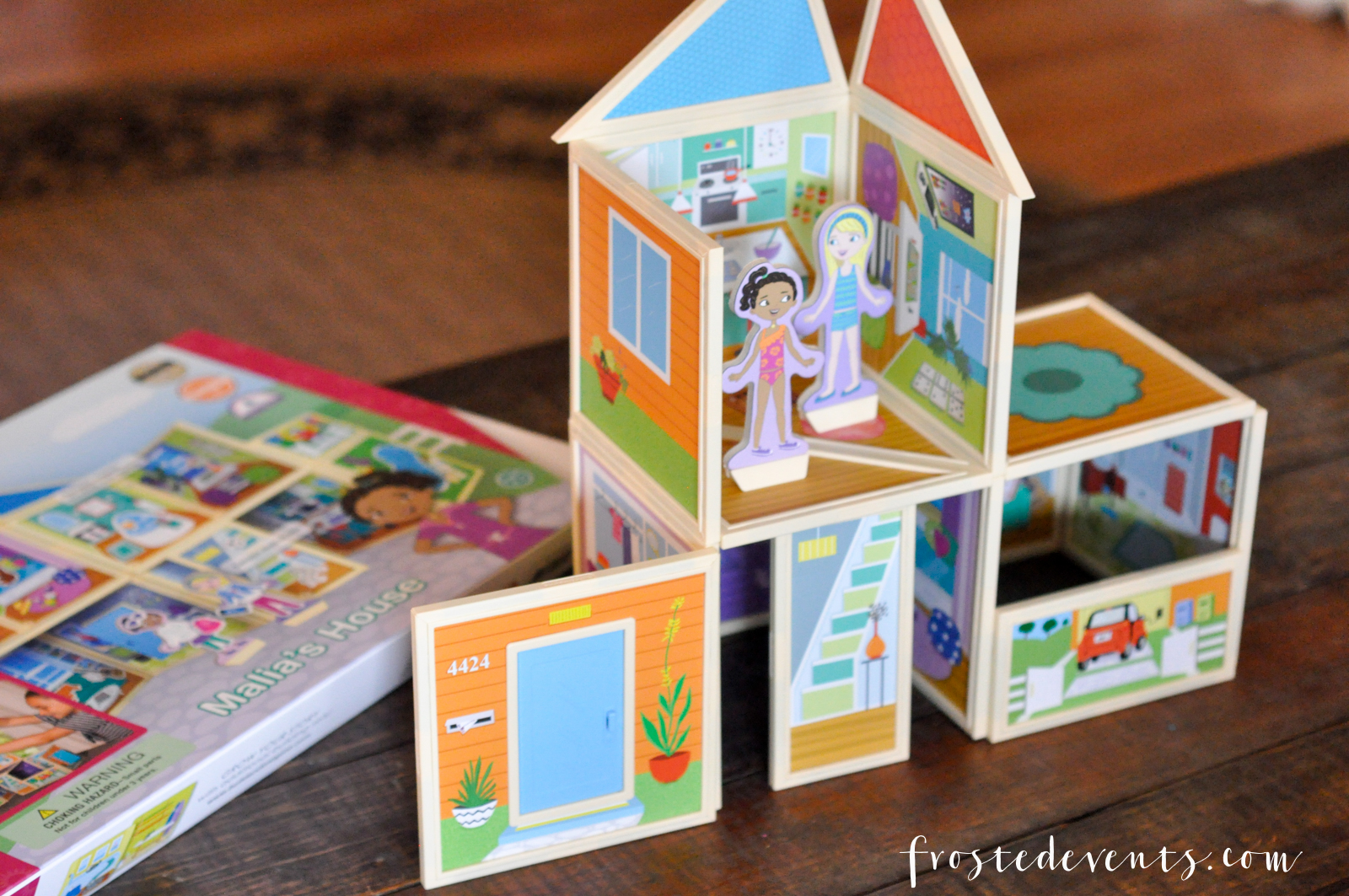 Malia’s Beach House playset comes with magnetic tiles that join together magnetically however you like. Each tile has an illustrated scene, from rooms of the house to an outdoor pool. Build it up tall, or make it one story. That’s what makes this toy so much fun, you can create your own world of possibilities.