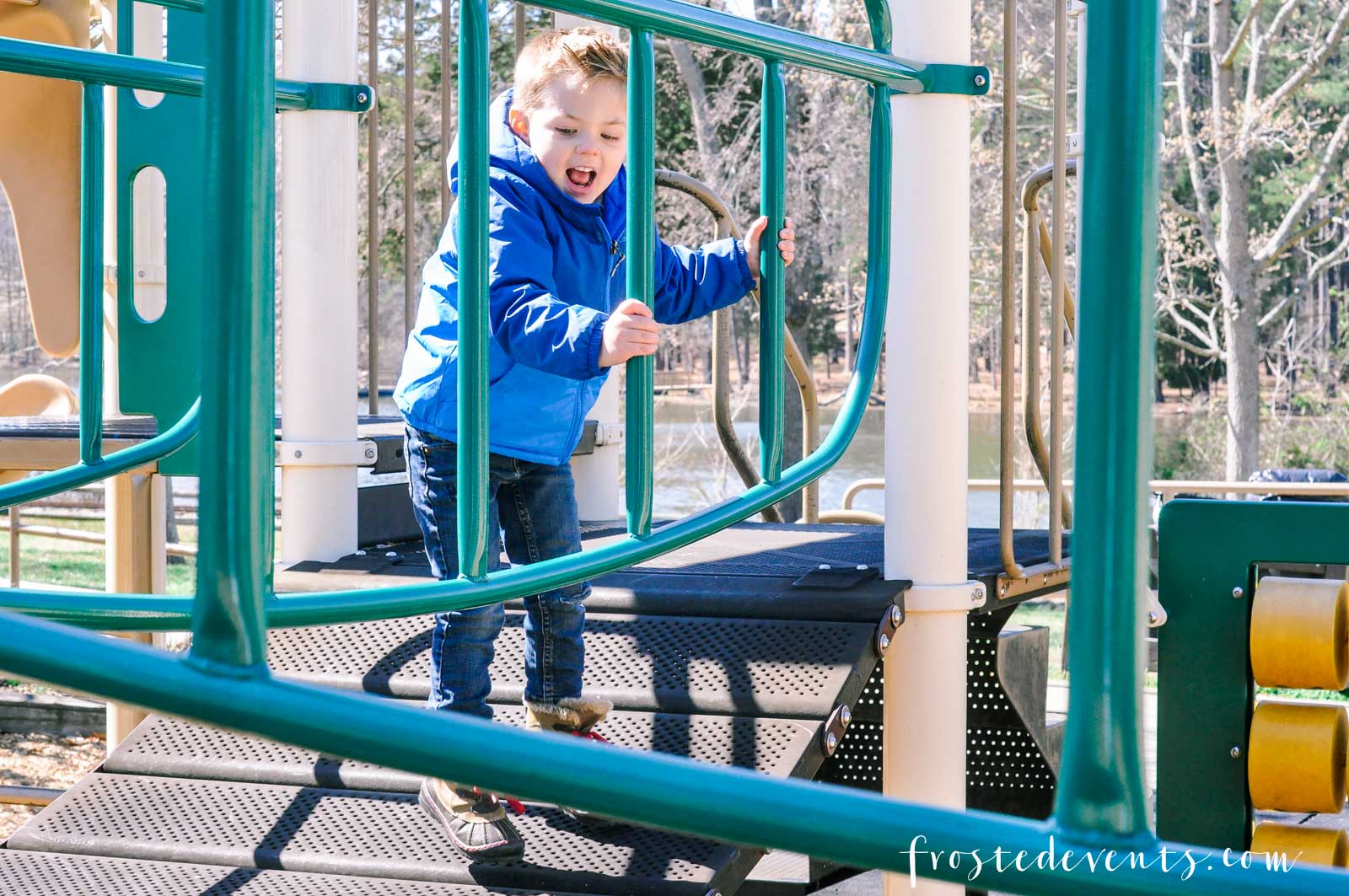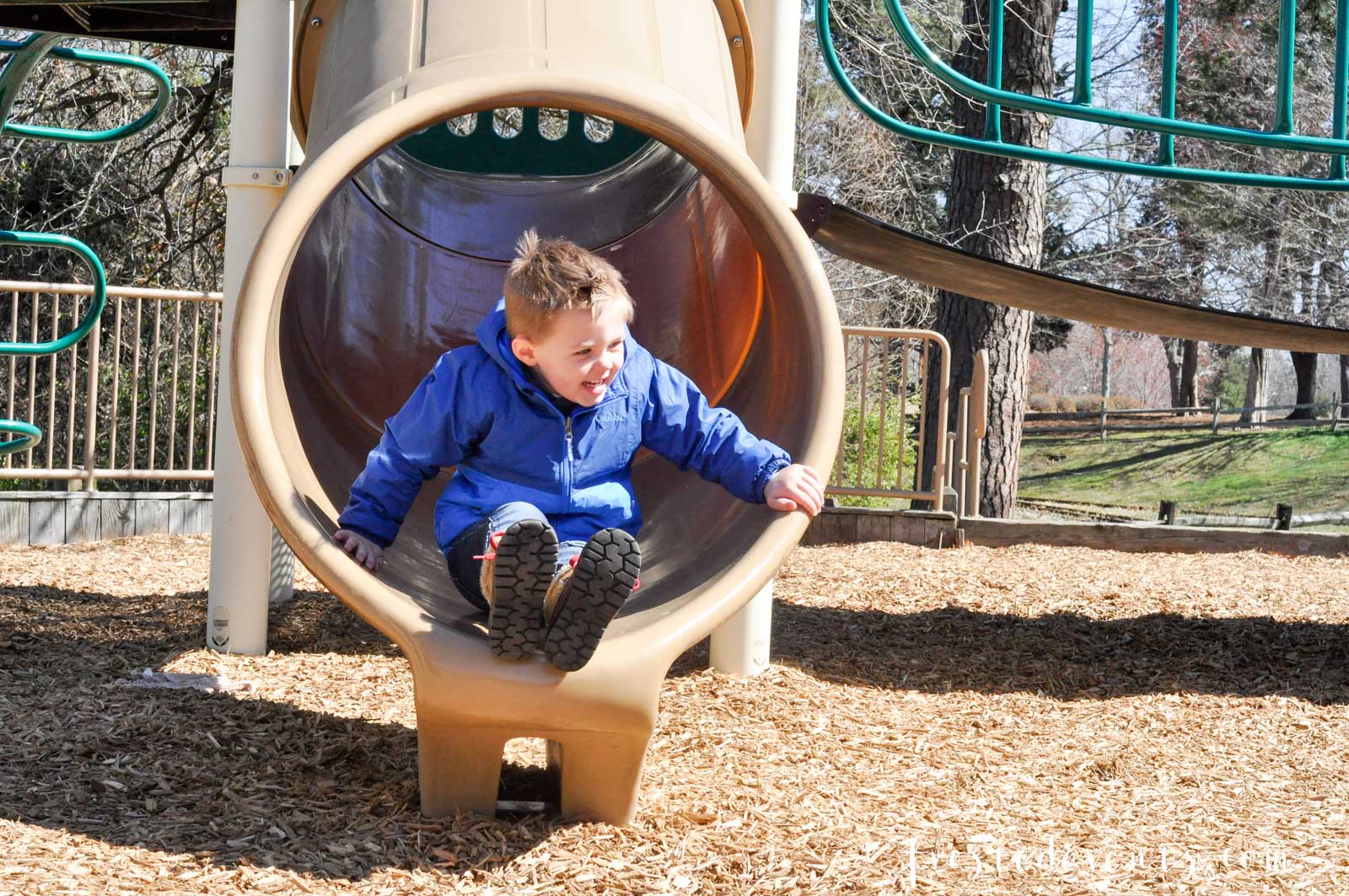 Thinking back on my old playground days it’s sweet to relive memories of my own childhood as I watch my son in action. Somehow I think you never really outgrow the happy feeling you get when you push your feet off the ground and feel the wind hit your face, swinging higher and higher. Or the whoosh of sliding through a tunnel. It’s just amplified, a million times sweeter when you see that happiness radiate from your child.
