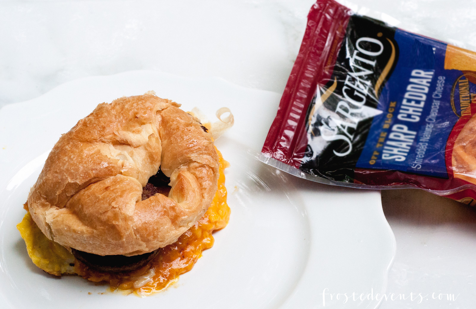 This is one of my favorite fast and easy breakfast meals to make. I pick up fresh croissants from the grocery, fry up sausage and egg and add a little shredded cheese at the end. The melted cheese on top of the egg and sausage, the flaky croissant, it’s a mouth full of amazingness.