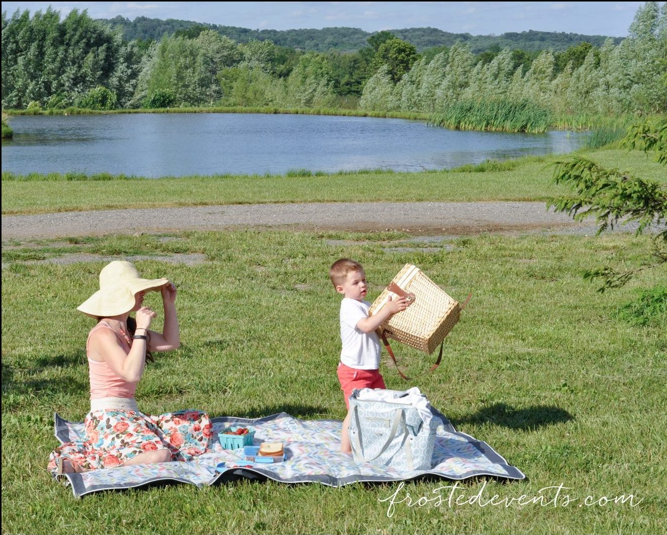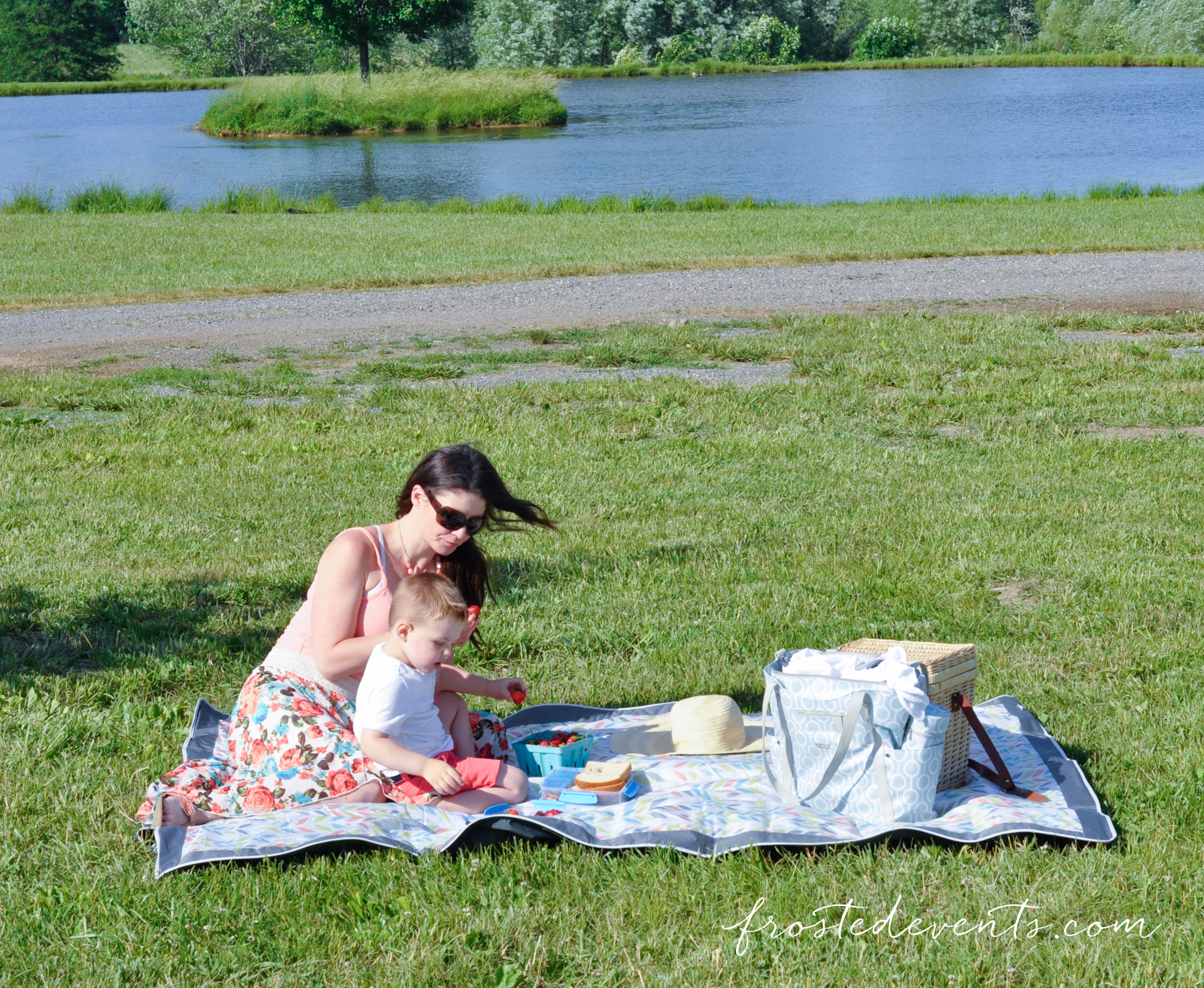 After spending a few hours picking strawberries and exploring the farm we found a spot by the lake for our picnic. I laid out our outdoor blanket and B unpacked the picnic basket. We nibbled on sandwiches and the delicious fresh picked berries, watching the geese and ducks waddling by the water.
