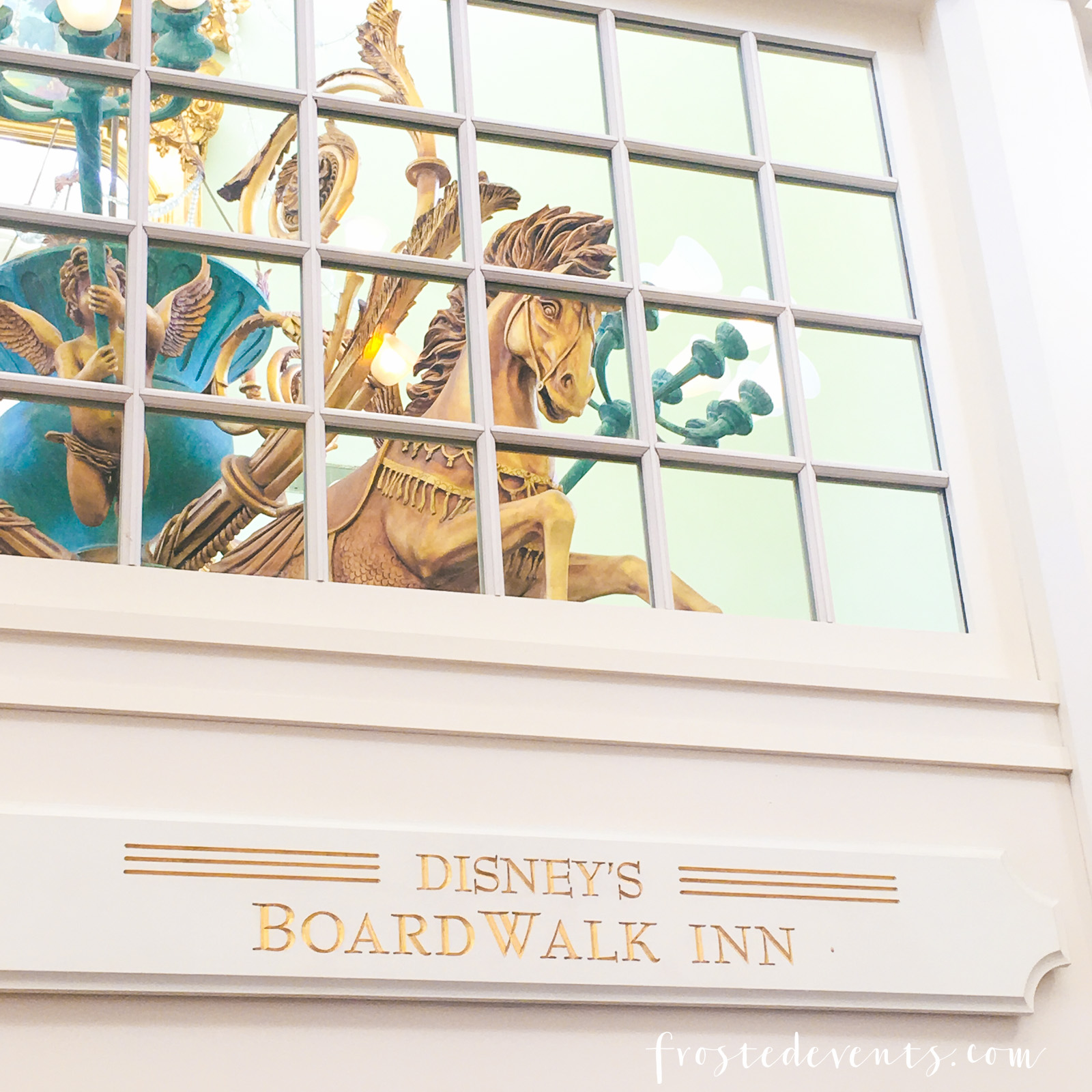 Stepping into the BoardWalk Inn is like wandering into another era, you feel as if you’ve just waltzed right into all the elegance and glamor of 1940’s Atlantic City. Open the doors to the lobby and you’re immediately greeted with all the details and grandeur, from the gilded horse chandelier above to the vintage carousel and miniature roller coaster that sits amid the antique sofas and sitting areas.