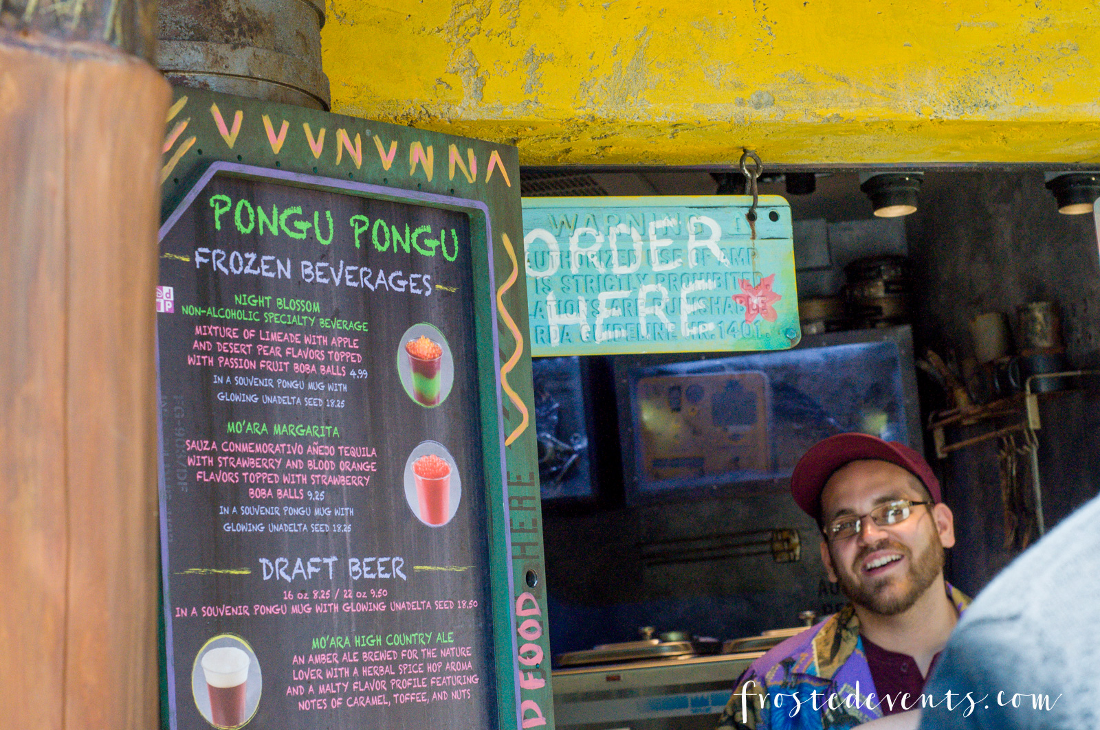 Pongu Pongu (means “Party Party” in Na’vi) is the where you’ll want to head next to order the Night Blossom drink. It’s a non-alcoholic mix of frozen limeade, apple juice, and pear juice topped with passion fruit boba.