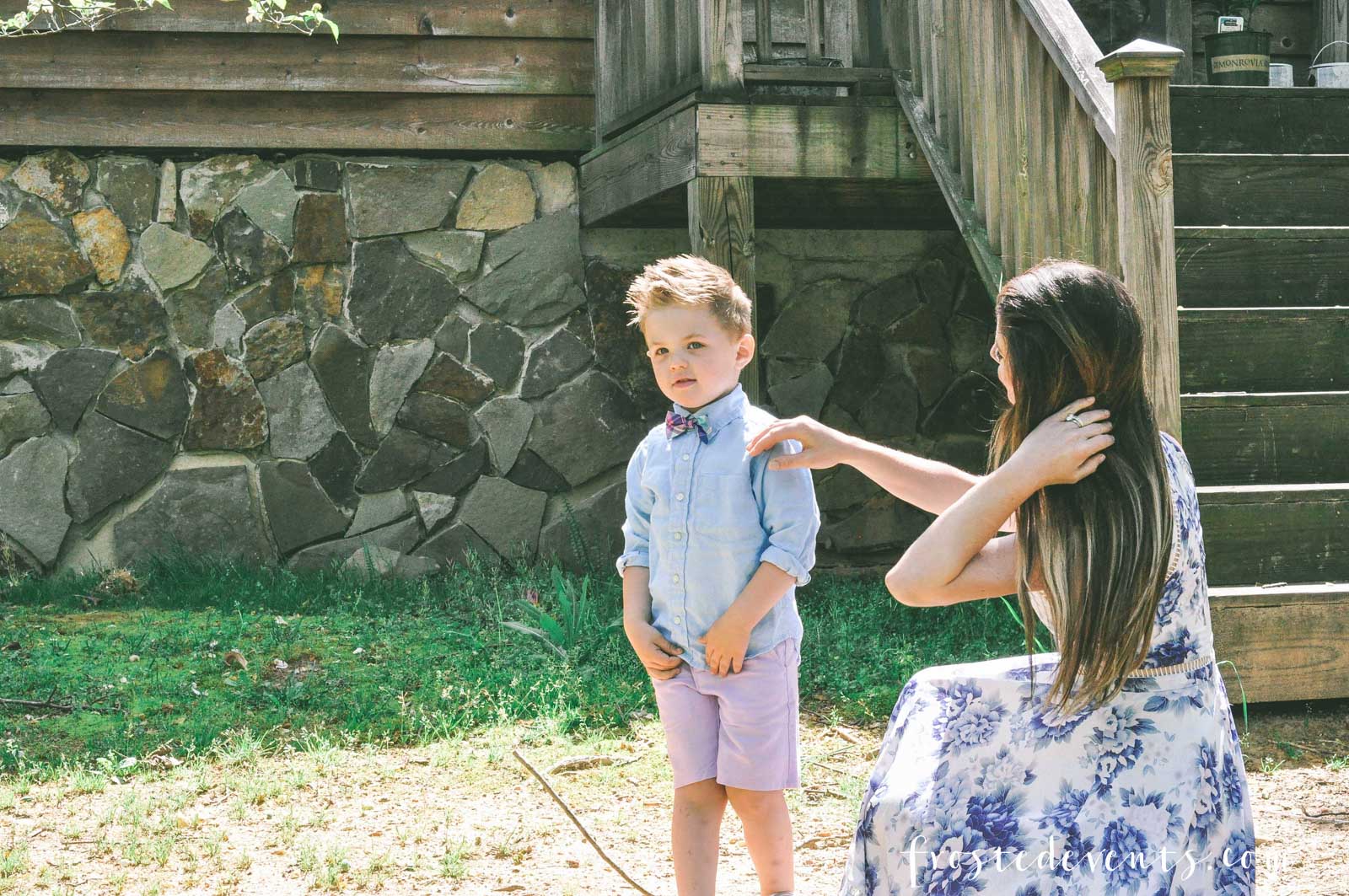 Skip back to before we got all dressed up though, when we did the early morning Easter bunny thing. But really I should tell you about how I dropped the ball (again!) on holiday tradition. I’m getting good at this one. It’s comical I suppose. I’m the mom who plans parties and blogs about cute ideas and then when it comes to my own kid I’m the mom who procrastinates till the last second, panics and picks up a grocery store cake and a bunch of random crap to try and pull off a last minute miracle. The mom that buys all kinds of cute Easter stuff from the Target dollar spot and not a single thing that works for a three-year-old boy. So last night I was the mom rummaging through all the Easter left-overs at the store to try and make an Easter basket. When did Easter become like Christmas? It was insanity.