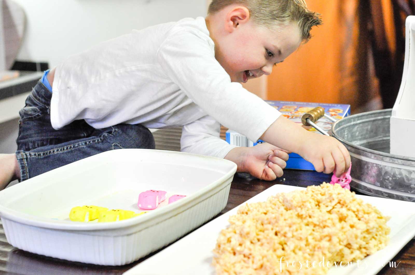 But first I had to show you this super cute Easter treat we whipped up one afternoon. These are so easy to make and your kids will LOVE helping out. My little guy was so excited he got to play mommy’s little helper. Mostly though he was excited about the sprinkles!