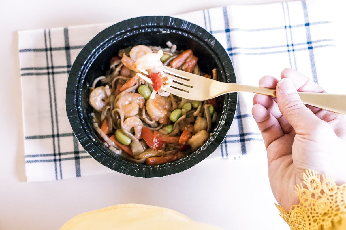 I love that the Stir Fry with Soba Noodles has edamame, peppers and onions in a flavorful soy ginger sauce. It’s seriously like I’m eating a meal from my favorite gourmet take-out restaurant.