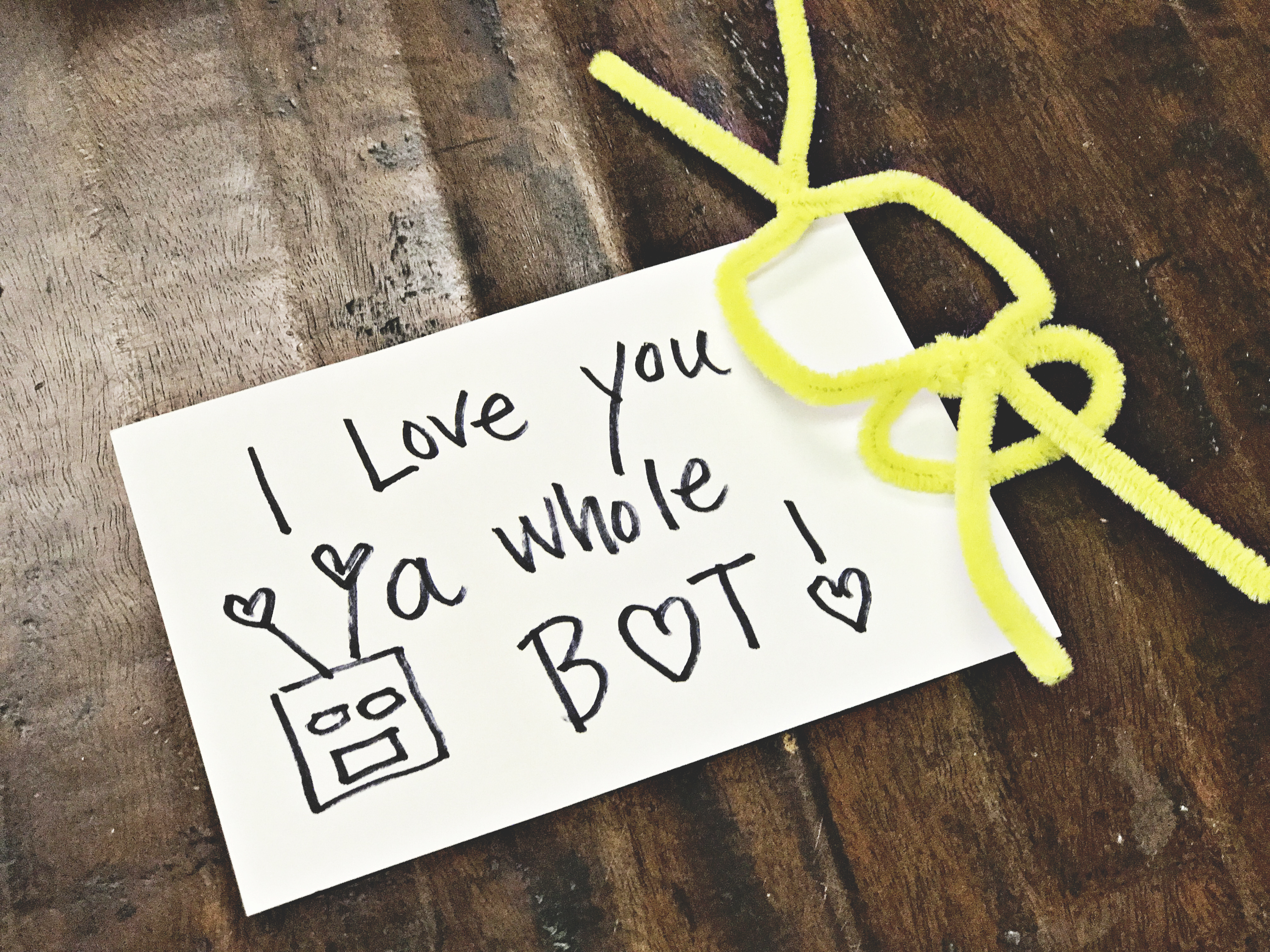 You can shape the pipe cleaner into all kinds of quick and easy shapes: Hearts, robots, flowers, stars…..