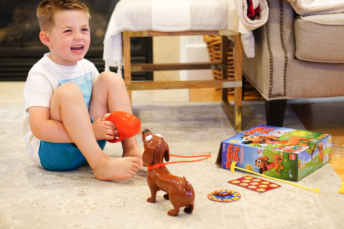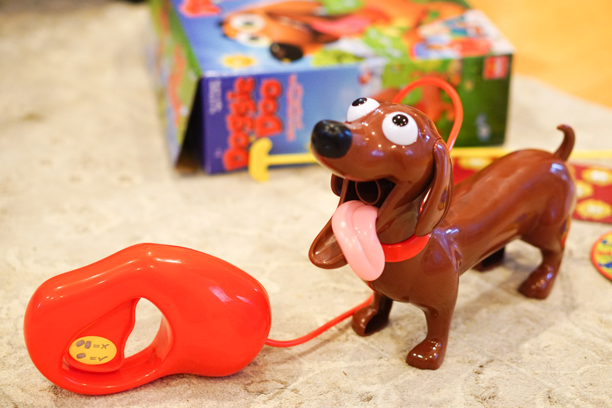 Feed your doggie, squeeze the leash, and after he makes his gassy sounds – plop! If you are the player who cleaned up the doo, you get a fart token. The player who has the most tokens at the end of the game wins!