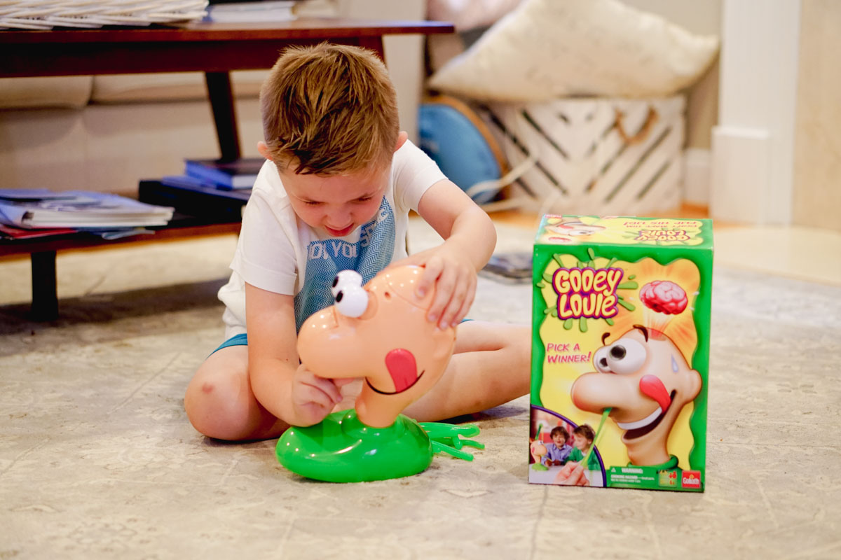 Another game that falls in the yucky yet fantastically fun category is Gooey Louie. Take turns trying to pick a winner with Gooey Louieâ„¢ but watch out . . . if you pick the wrong one his eyes will pop and his brain will fly out. This game gets us all laughing, it’s definitely exciting to play. Not knowing if you’re the next to pull the booger that flips Louies lid keeps everyone on their toes.