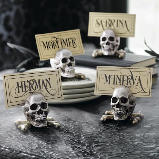 Halloween Decor Table Decorations Silver Skull Placecards by Grandin Road Silver Skull Placecard Holders, Grandin Road
