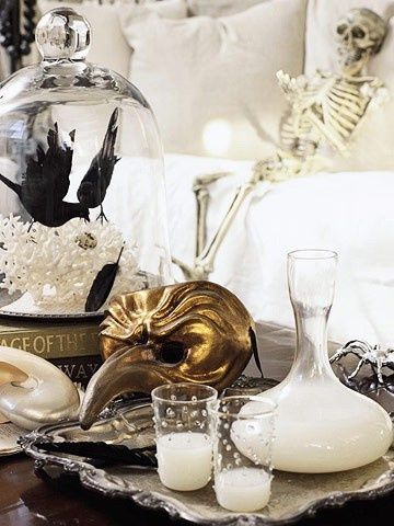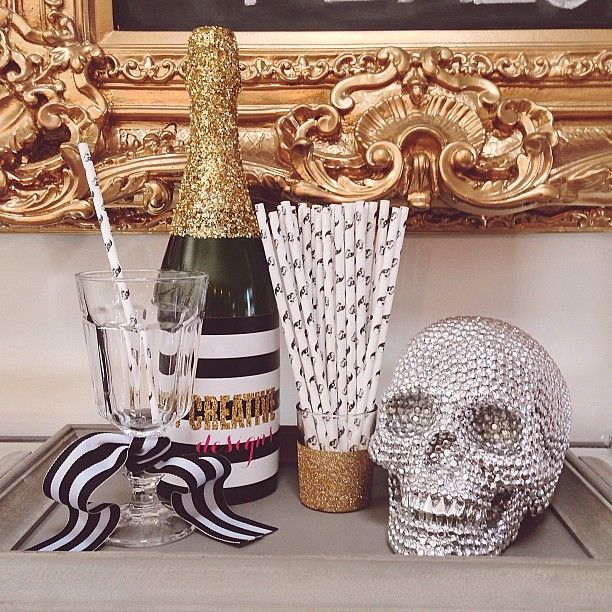 Celebrate Halloween in a sleek and stylish way with these fabulous gold and glam Halloween party themes. Take your dinner party from scary to sleek and spook-tacular with a few gilded decorations. A spray painted skeleton takes centerstage, or  add some haunting halloween style to your dinner table.