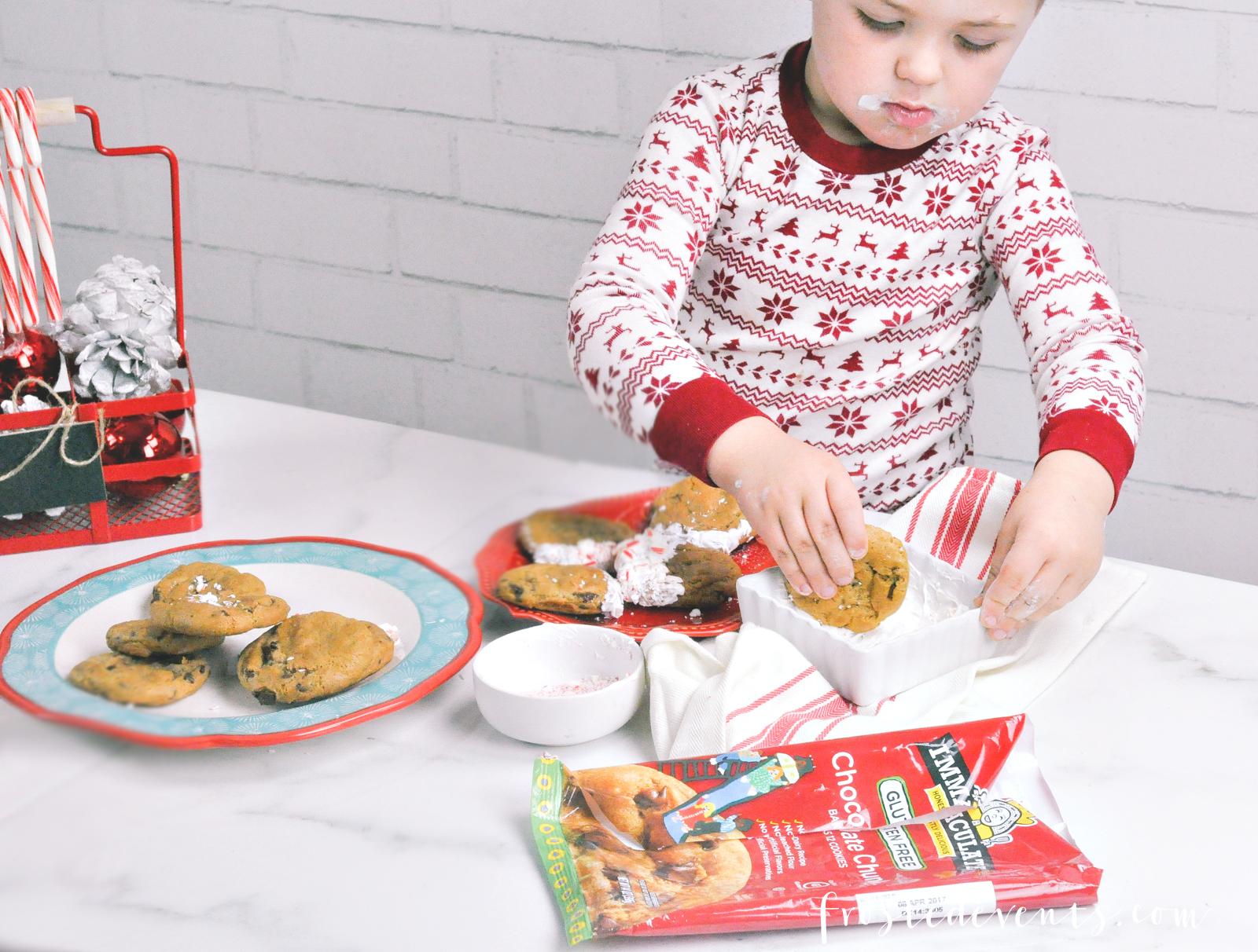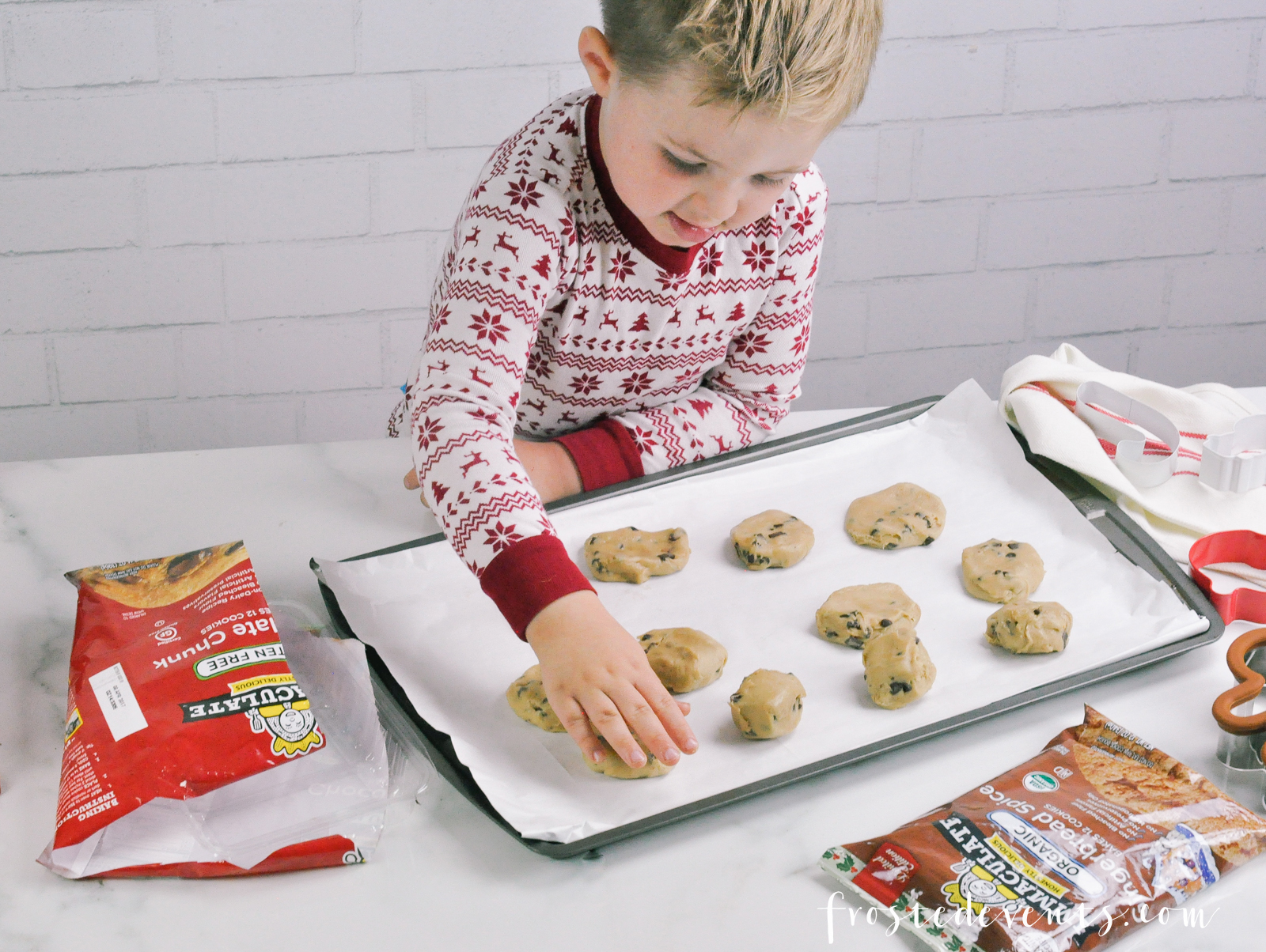 Recently, while I was grocery shopping at Whole Foods I came across a brand that caught my eye. Immaculate Baking makes wholesome baking products, many of which are certified gluten-free or organic. We try to shop for foods that are organic as much as we can, so I grabbed a few refrigerated cookie dough packages to try. I’m all for the ready to bake stuff this time of year. It means less clean-up and less work, more time spent on the fun stuff like decorating and eating the goodies with my little cookie monster.