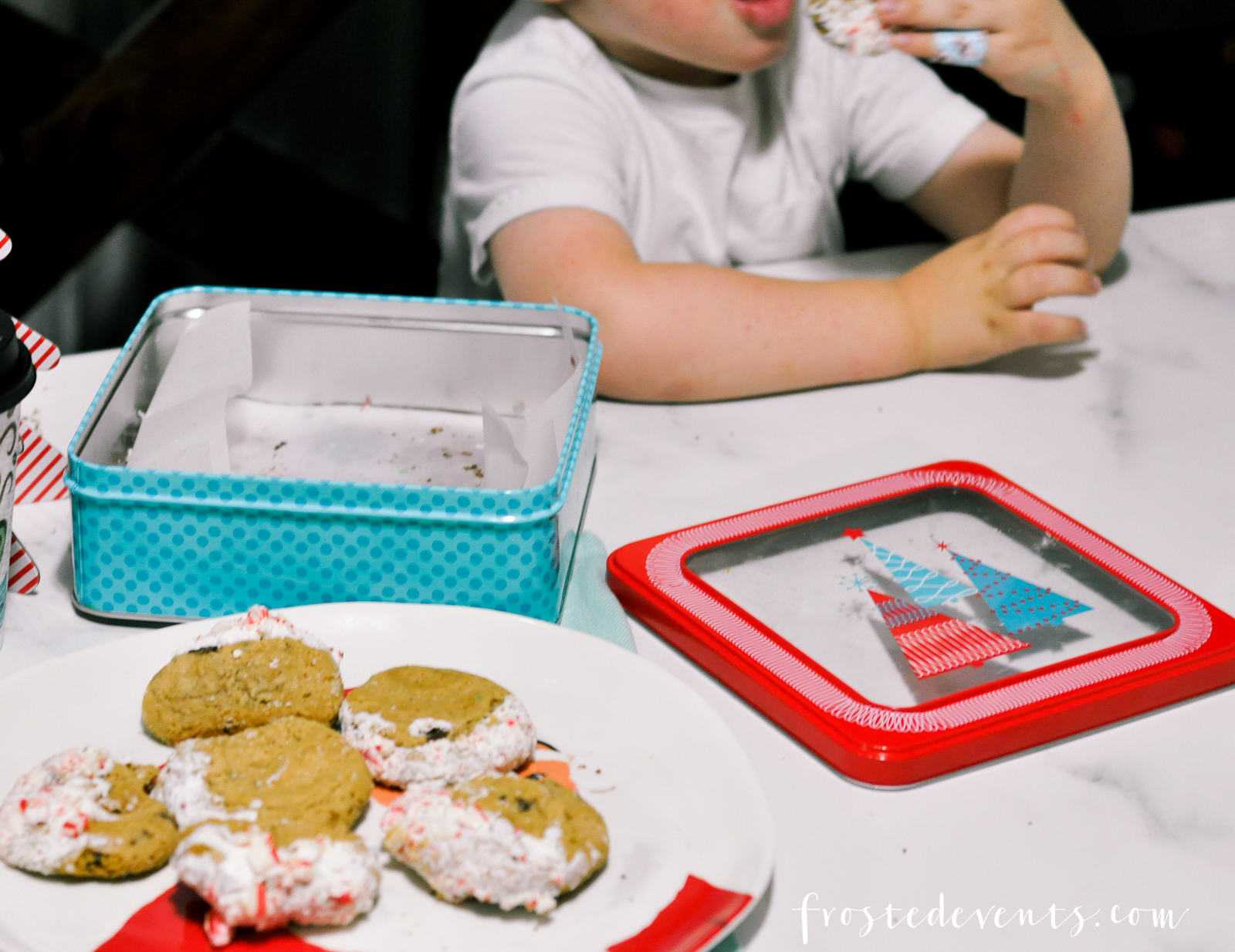 - Child eats half of 5 cookies while mom is cleaning up frosting disaster