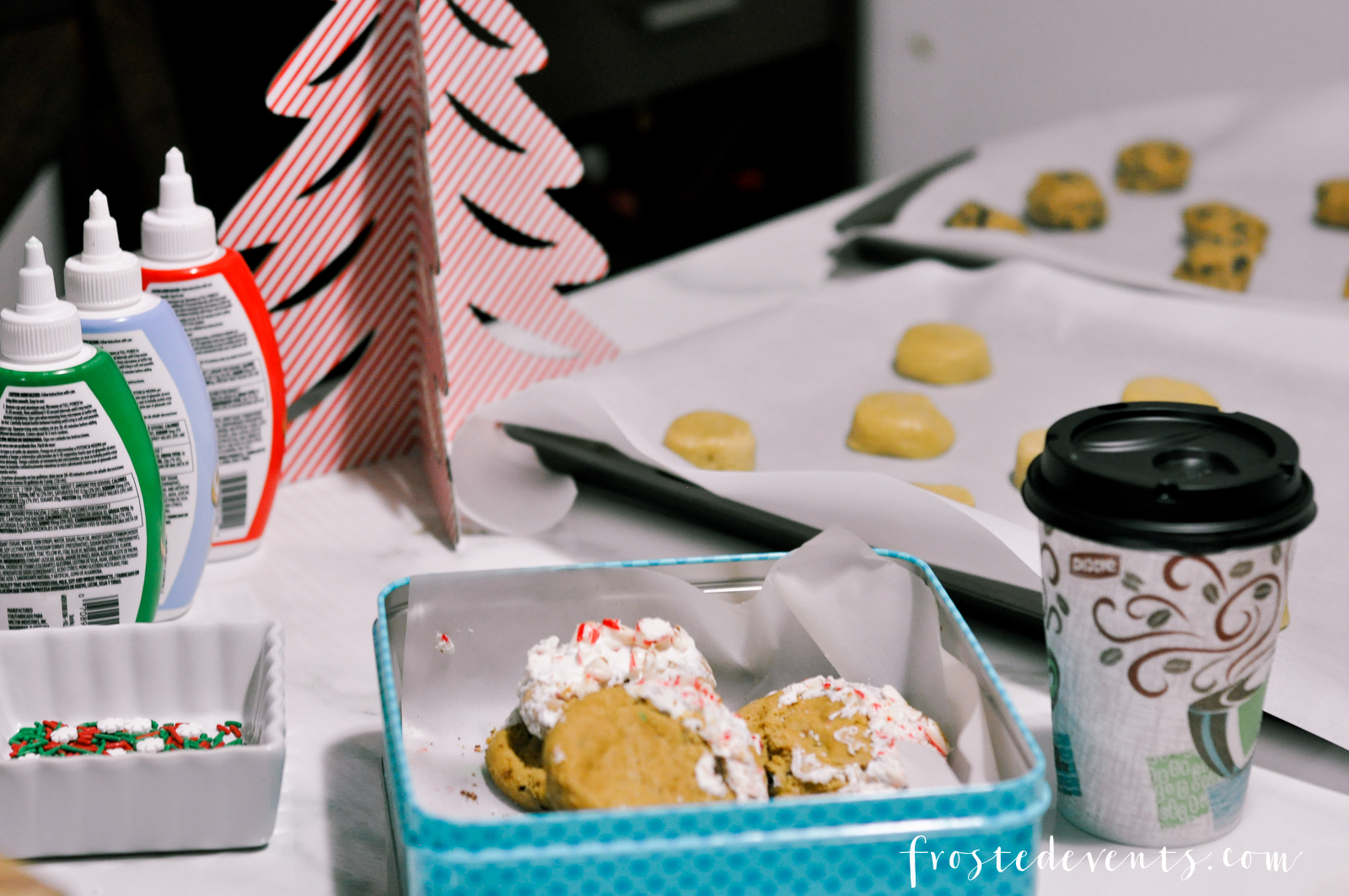 - Mom sets out all the cookie baking tools, decorations and supplies