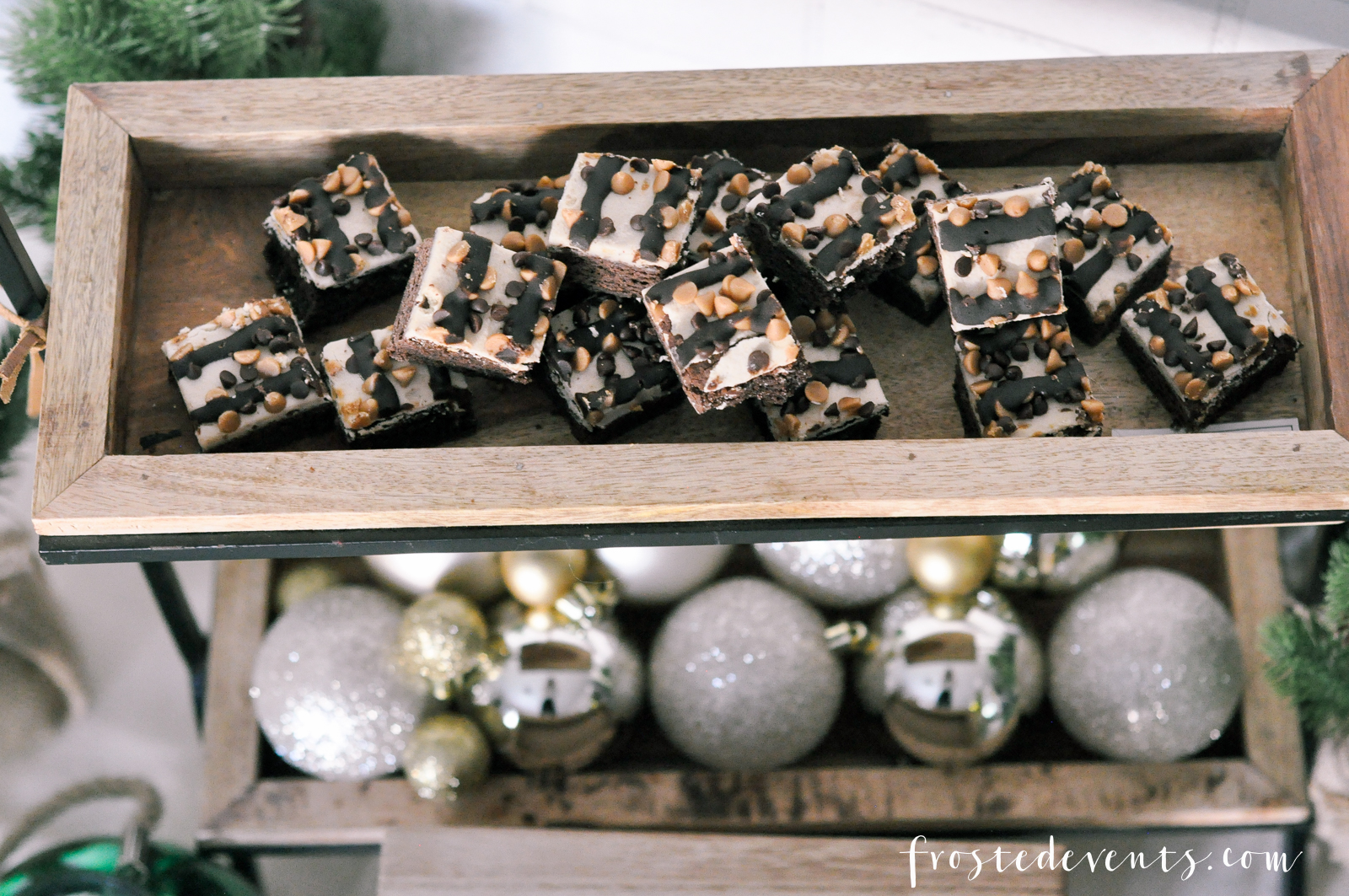 I would share the recipe for these delicious brownies, but guess what? I didn’t make them. They are my store bought party hack, just sliced em into squares and served. See, keep it simple and you’ll save yourself time and sanity, especially during the holiday season.