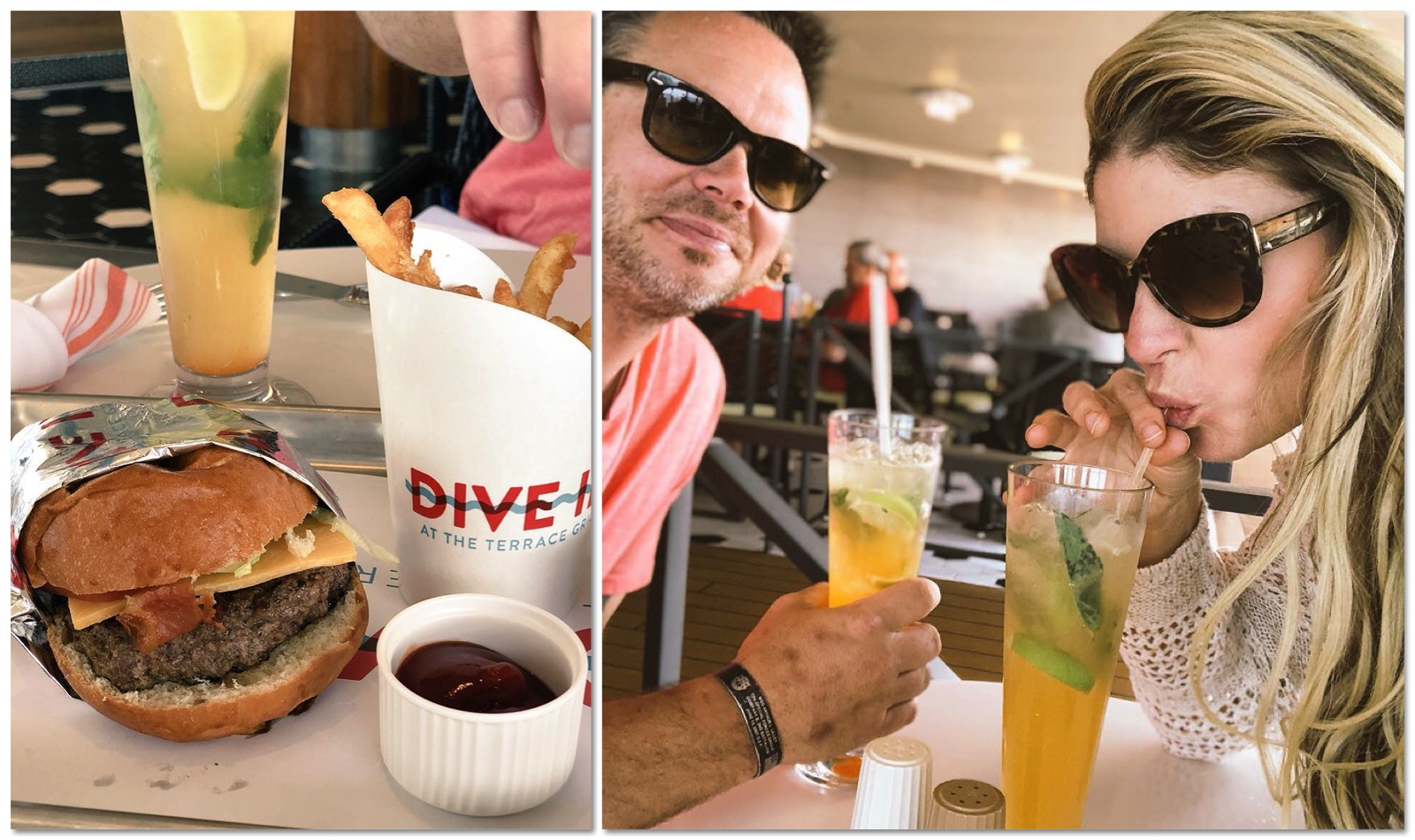 Past the pool area you’ll find the main dining room which offers several buffets featuring gourmet cuisine of all sorts. Mexican, Italian, Asian, American, whatever mood you’re in there’s a meal to match. I loved the create your own salad bar where you can choose from a huge selection of healthy fare. There are fruit and cheese plates, carved sandwich stations, desserts and dining options galore. The midship pool has a delicious quick-serve burger bar and there’s a great pizza place by the back pool too. You definitely won’t go hungry on this ship!