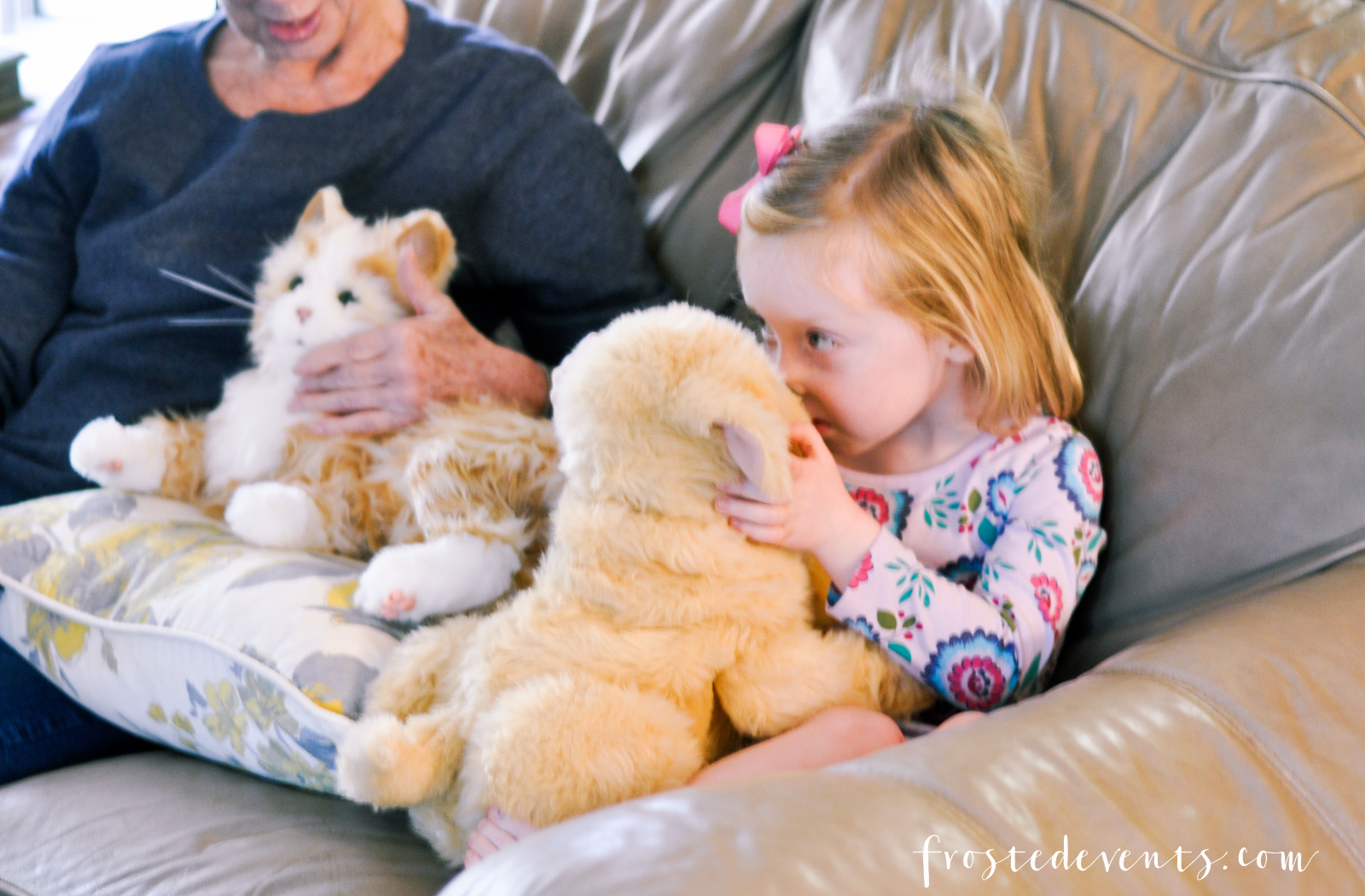 Right out of the box my grandmother smiled at the sight of the Joy For All Pets. She loved how adorable they were and couldn’t stop rubbing their furry backs. I loved seeing how the kids all gathered around to give our new furry friends a pat and a snuggle too! Pretty soon everyone was cuddled up on the couch, four-legged friends sitting on laps getting petted and loved on.