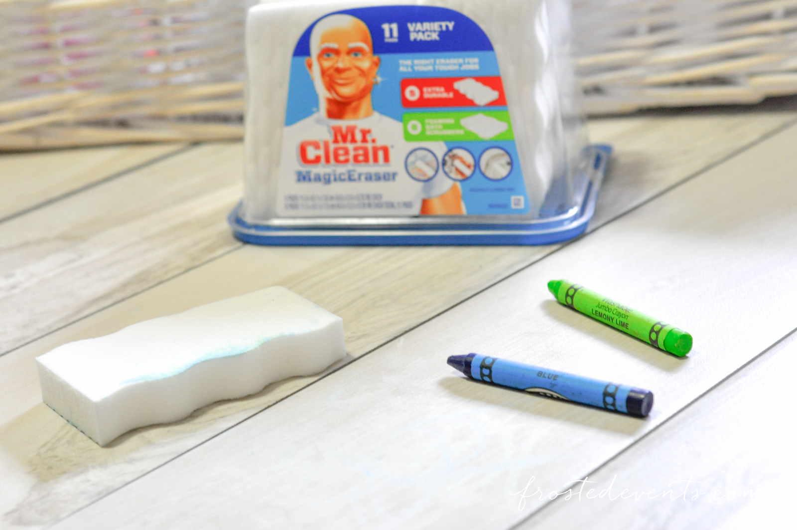 Mr. Clean Magic Erasers. I can’t figure out these guys get tough to remove marks off your walls, floors, countertops and everything in between. It truly is like magic. I’ve used them on endless crayon marks, stubborn stains on the the kitchen counters and “well, that’s there forever” trouble spots in the bathroom and they all disappear.