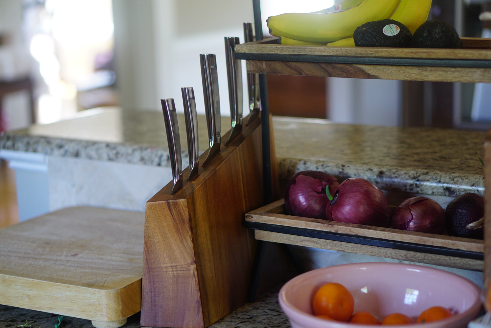 My husband would list this as his number one favorite kitchen item we own. Until you’ve experienced the difference a great set of knives make, you just can’t understand. It’s the little things that take making meals from a dreaded chore to something you might actually enjoy. Having a sharp, professional set of knives is one of those necessities.