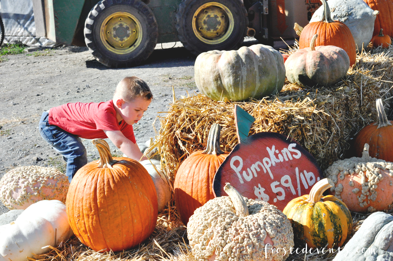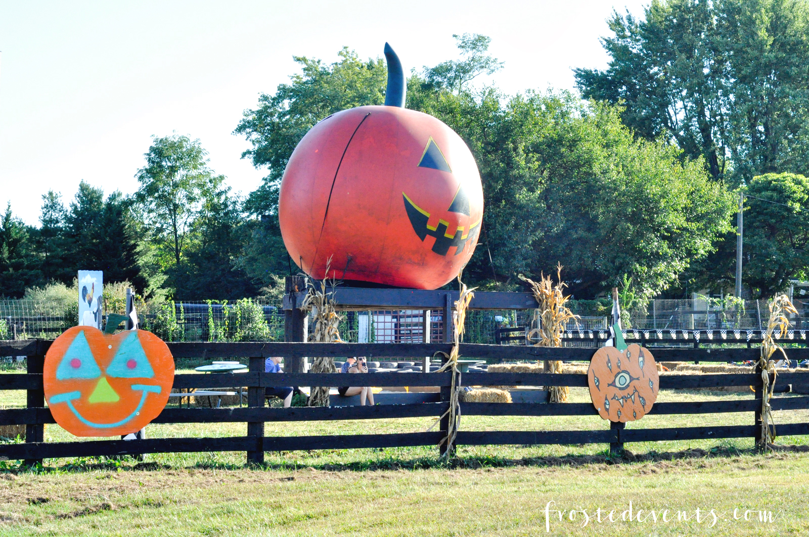 A pedal cart track and a corn bin are at the back of the park under the giant pumpkin. After all the fun we had already had, I could B wasn’t gonna make it much longer so we opted for riding the hayslides instead. After a few races down the hill on our potato sacks it was time to call it a day, so we made our way back to the main entrance to pick out our pumpkins. You can also purchase larger pumpkins by the pound, and there is a cute outside shop that sells baked goods, jellies and lots of delicious treats.