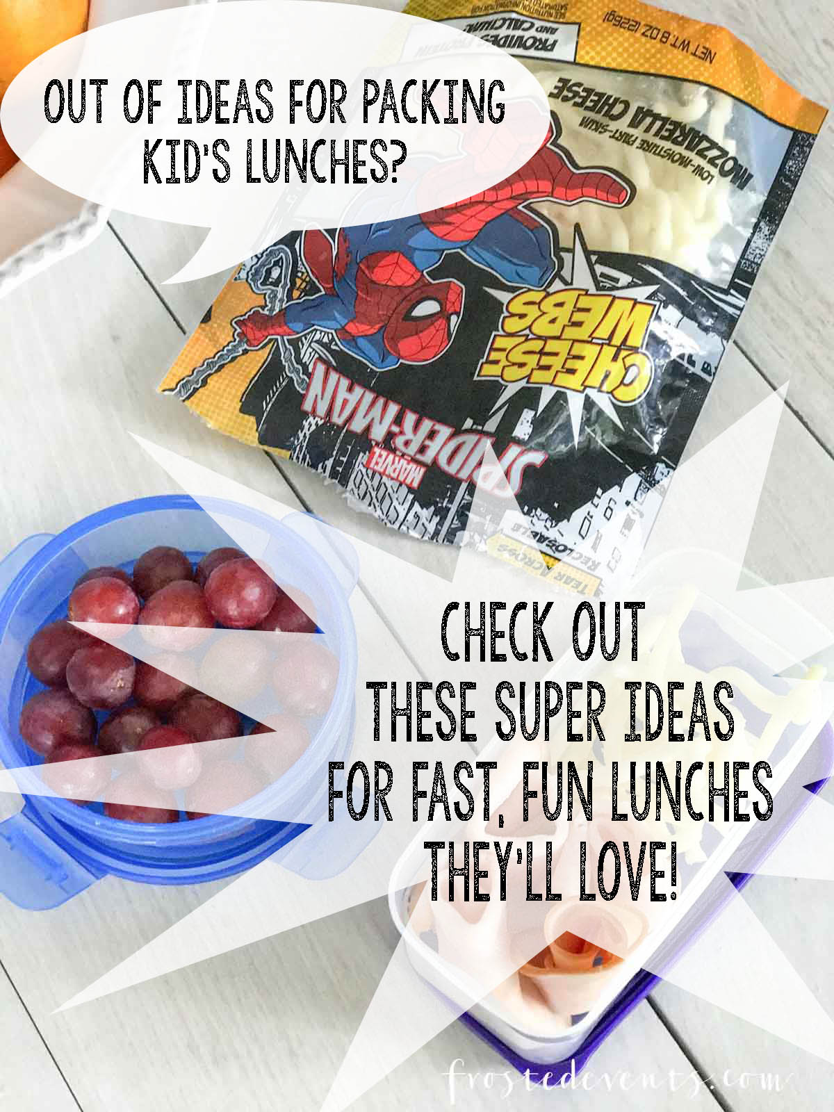 2. Let Kids Play Chef . Kids love to get in on the action when it comes to making their meals. Give them the chance to get creative with their lunch box by packing up separate foods they can combine. I grab a package of Marvel Spider-Man Webs Cheese when we grocery shop at Wegmans. It’s great for adding to lunches Brady can create on his own. Cheese is a good source of calcium and protein he can add to a pizza or sandwich.