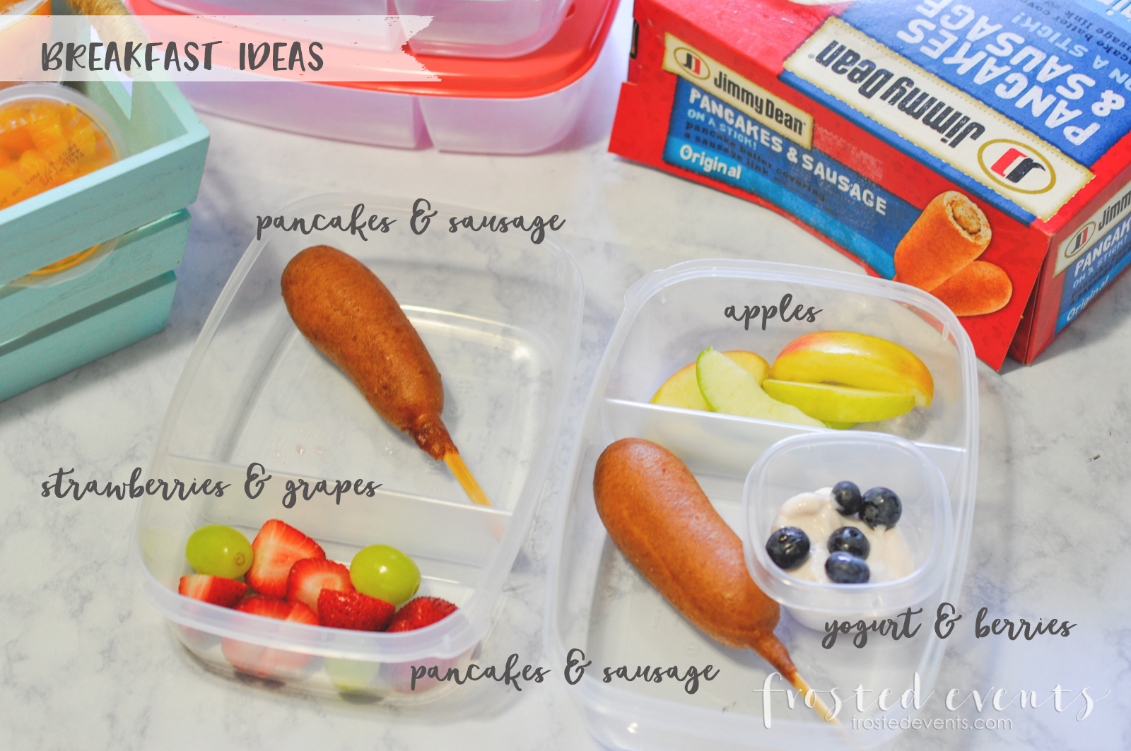 Pick a protein and add some fruit. Pancakes and sausage on a stick combined with grapes and strawberries is my son’s favorite. Sometimes I add a little cup of yogurt too.