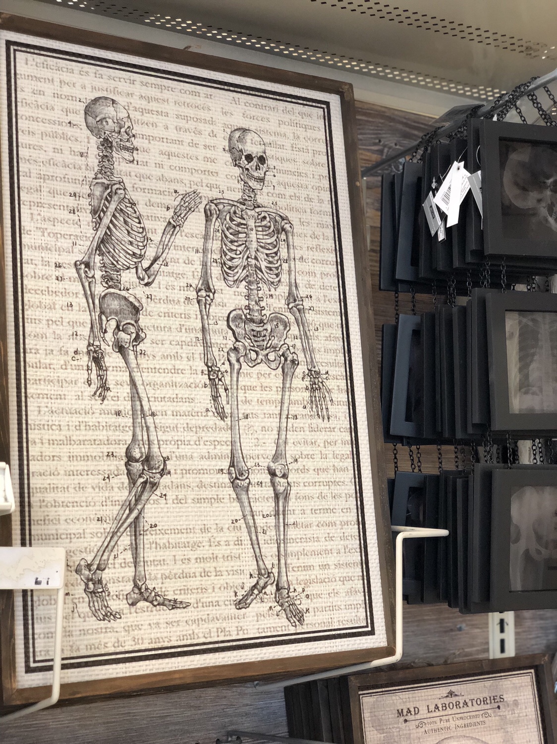 Skulls and skeletons galore! Michael’s has tons of skeleton decor. I love this one–