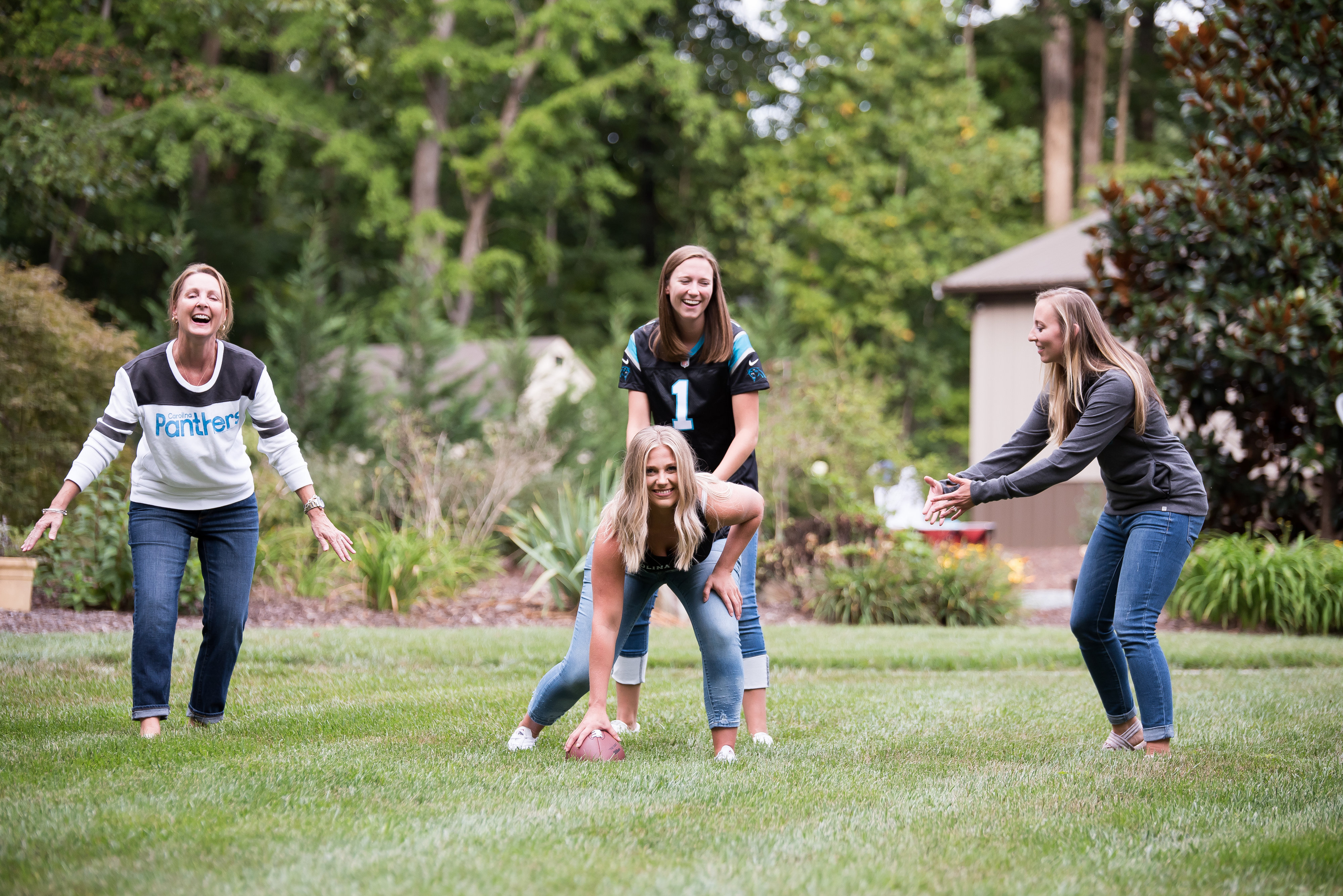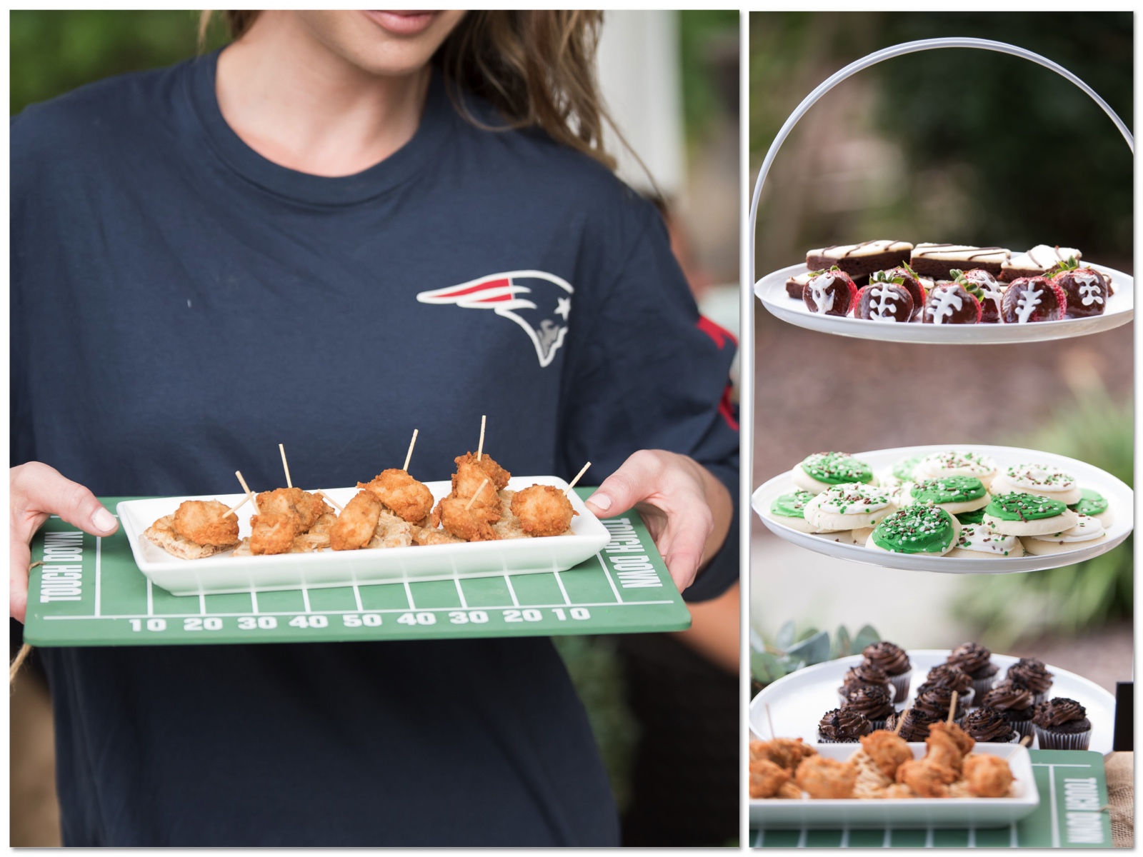 After a little friendly competition with our fantasy football draft picks and after everyone had their sugar and caffeine fix we headed out to the backyard for some football fun. Half of my crew are die-hard Carolina Panthers fans while the other half are Patriots fans (or just Tom Brady fans so that went with the Pats, lol!)