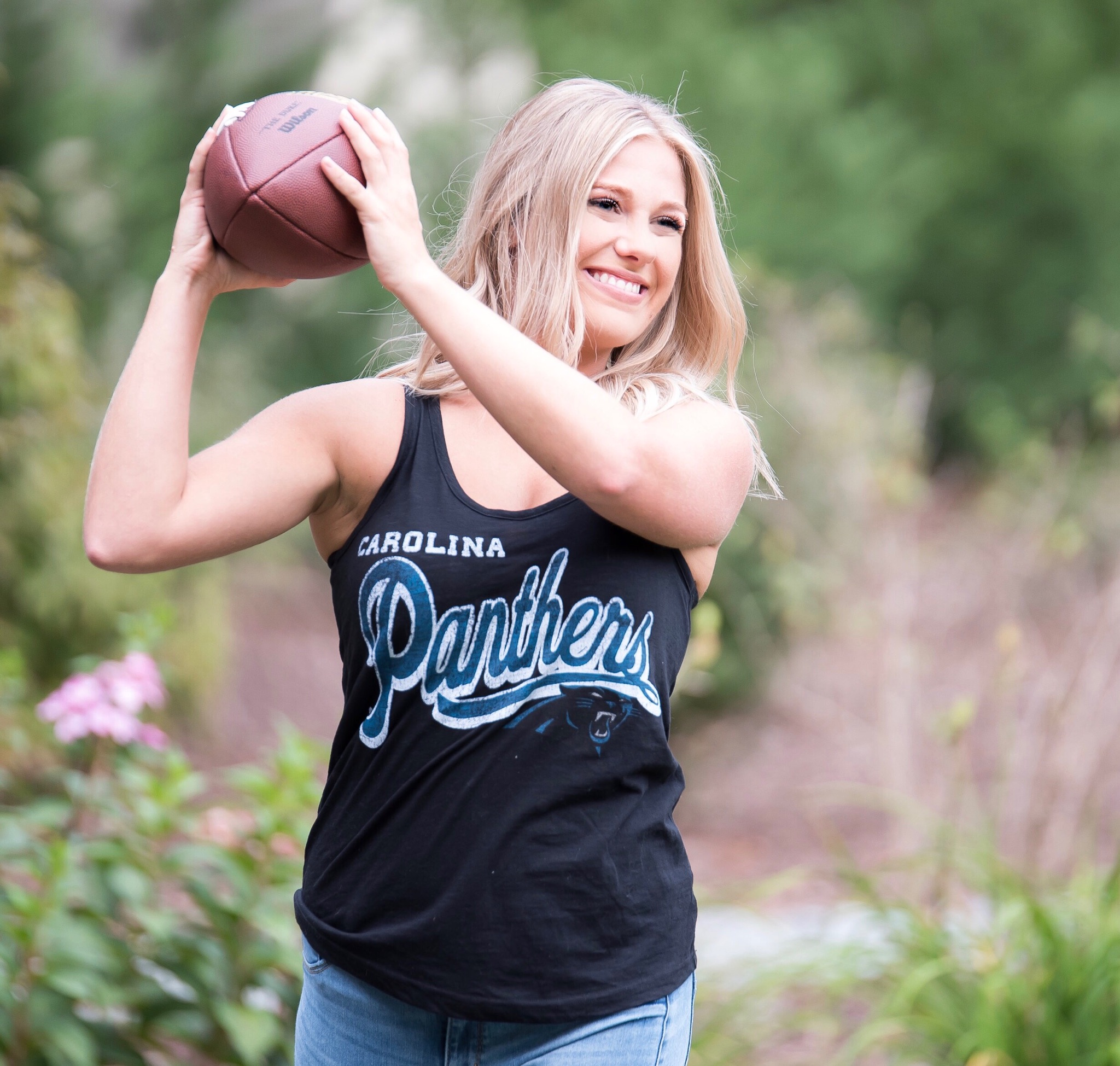 Speaking of Panthers pride and fan style, this is my friend Cassandra. She rocked this Carolina Panthers shirt like no other. Isn’t she the cutest thing?