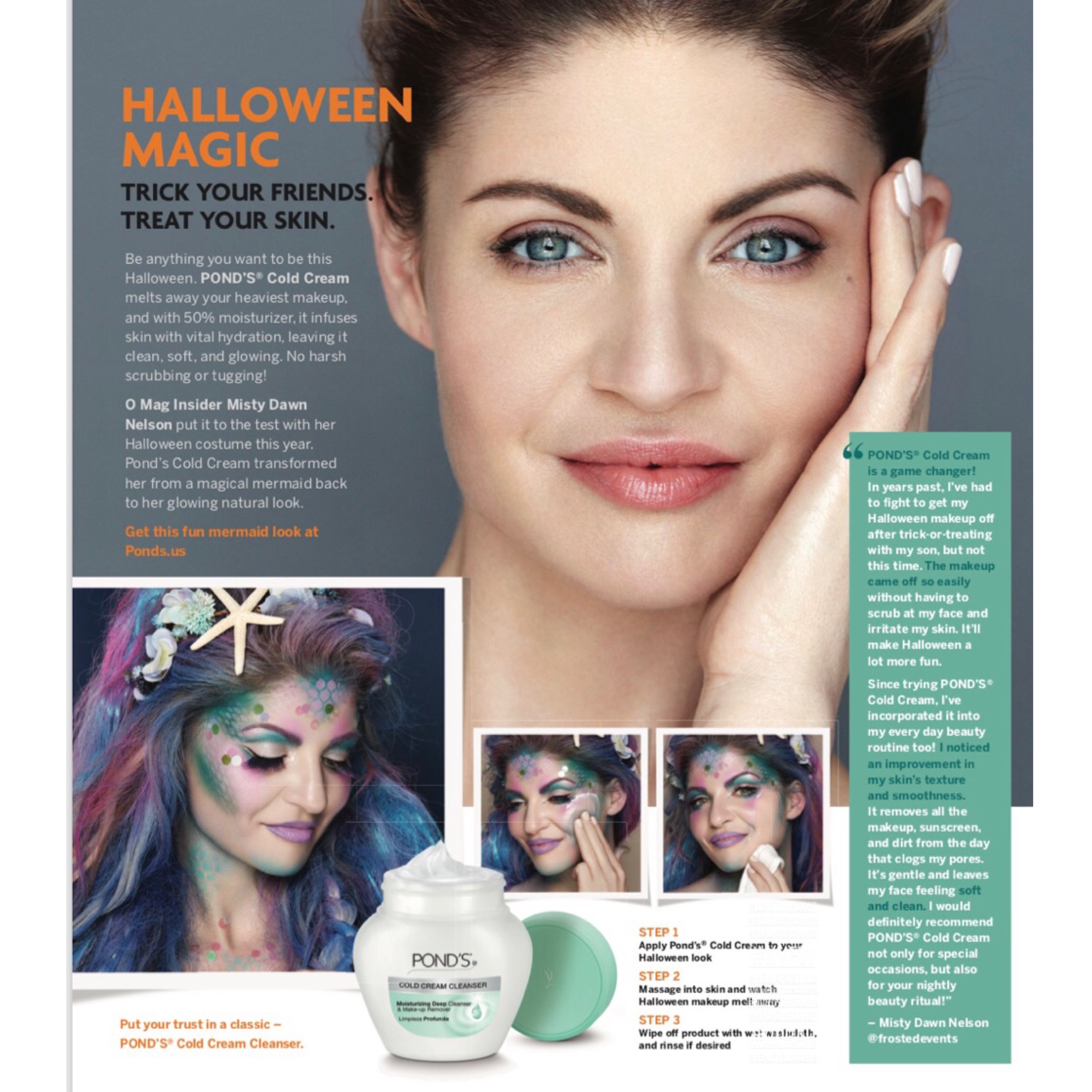 I loved the hair and makeup team I worked with for this shoot. My hair stylist, Fred, was hilarious! He kept me laughing the whole time while working his magic on my mane. He teased my hair into the most gorgeous side sweep, then turned it into a pretty updo and finally a fantasy mermaid mess that you have to see to believe. And you’ve got to see how well Pond’s Cold Cream Cleanser takes it all off!