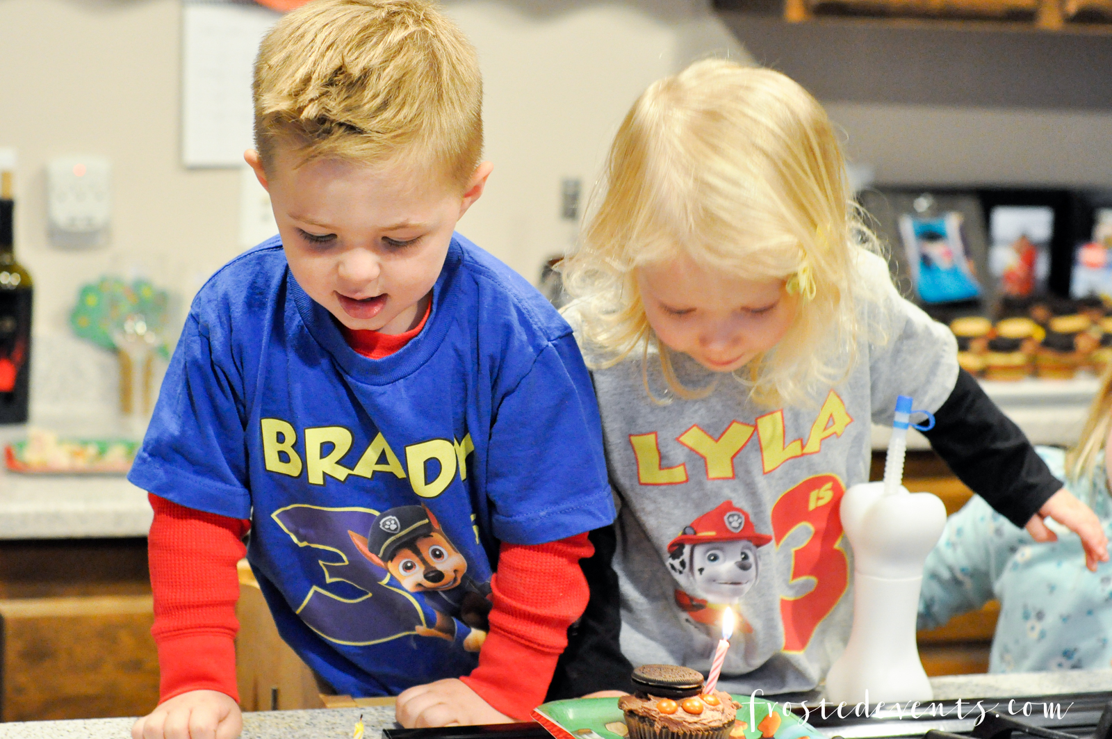 I ordered our kiddos the cutest Paw Patrol shirts off Etsy. Our adorable Paw Patrol squad blowing out their birthday candles.