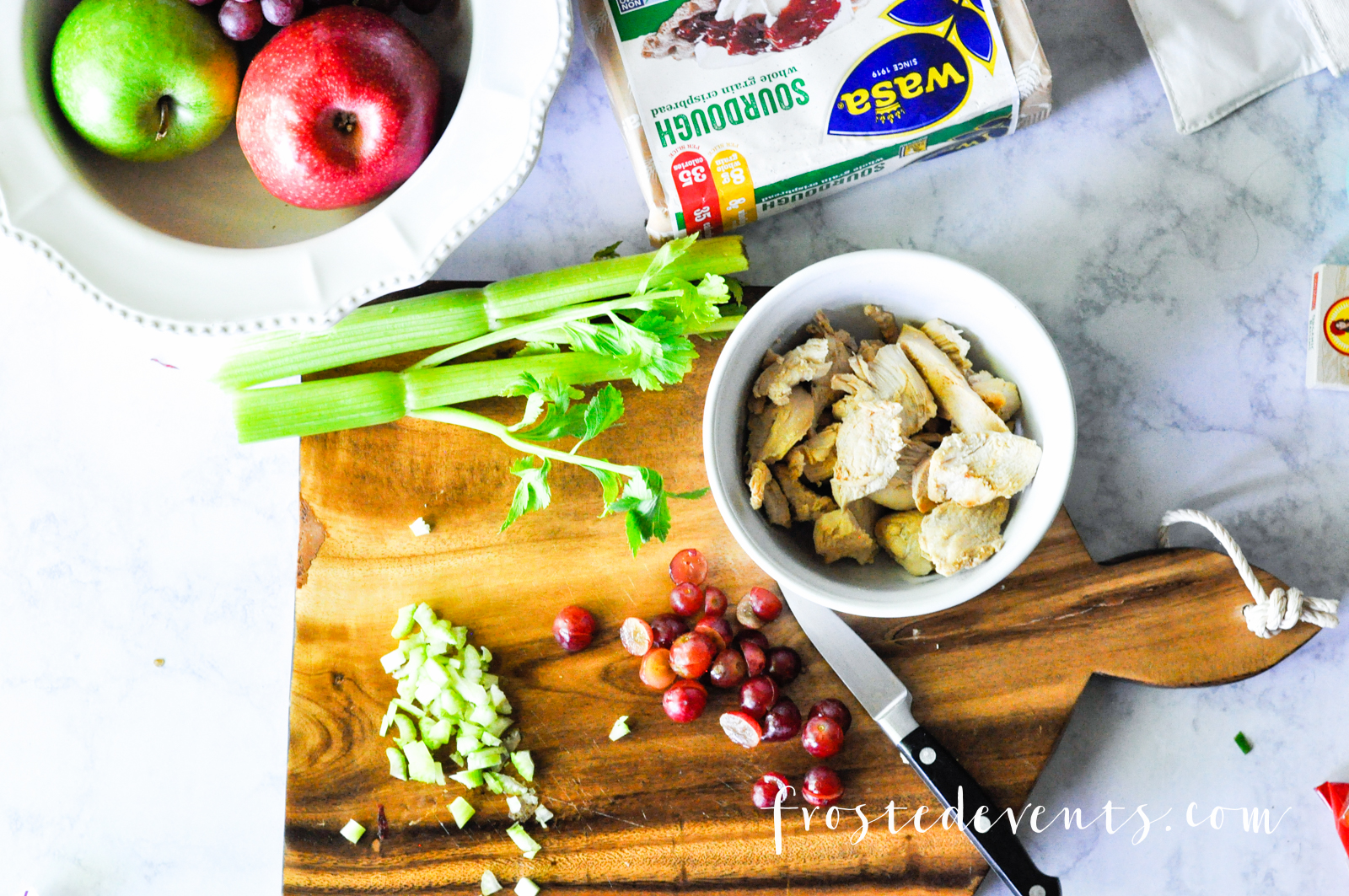 I’ve made this recipe so many times and it’s always been a crowd favorite for baby showers and luncheons. It’s delicious, creamy and crunchy and a little bit sweet. And it goes great with our favorite Wasa crackers.