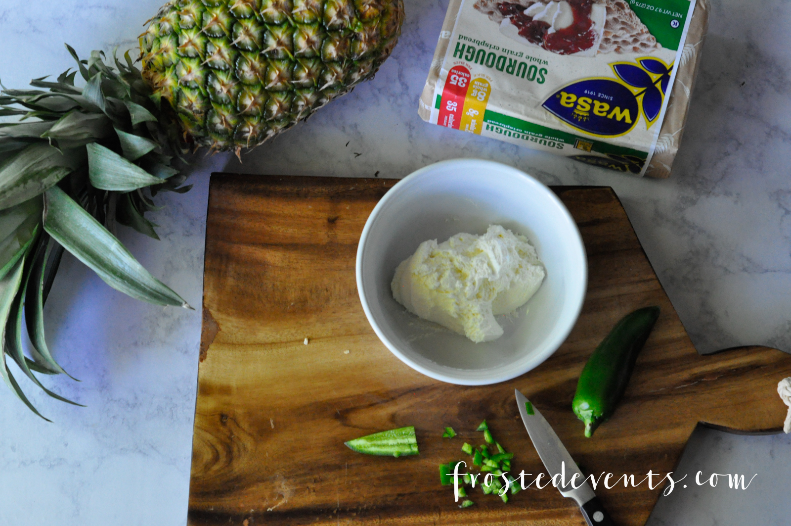 - Combine pineapple, cream cheese and jalapeno in a bowl.