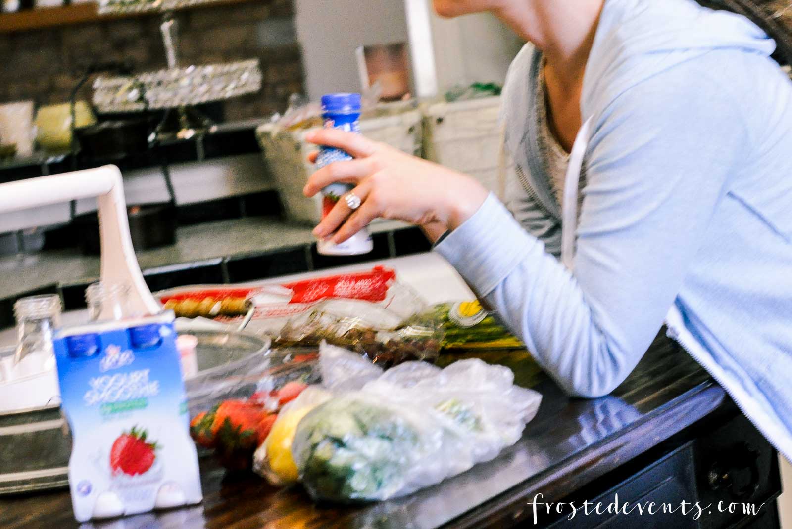 Bananas, apples, grapes, whole-grain pretzels, cottage cheese, almonds, blueberries and cheese are also on my snack shopping list. A piece of fruit, a handful or berries and nuts or some pretzels and cheese is just the right amount to keep me from crashing.