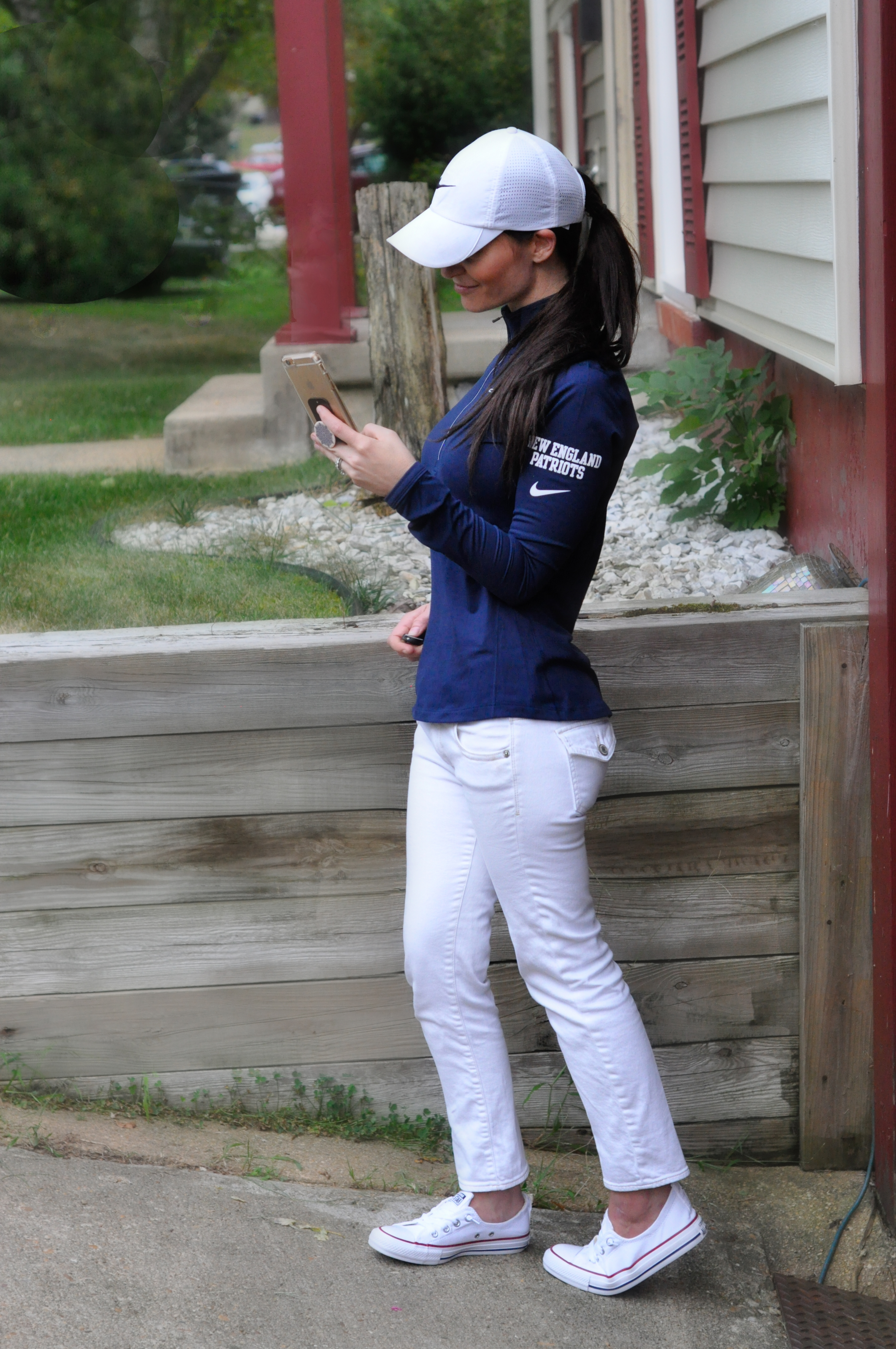 I got this cute, vintage style New England Patriots Majestic Navy/Gray Goal to Win Raglan Half-Sleeve T-Shirt. It’s super soft and has that whole girl next door vibe paired with jeans and a ponytail. And I LOVE this New England Patriots Nike Navy Tailgate Element Half-Zip Performance Jacket. I could wear this top every day, it’s that comfortable. That’s what I love about this collection, you can find something that works for game day, and any other day of the week.