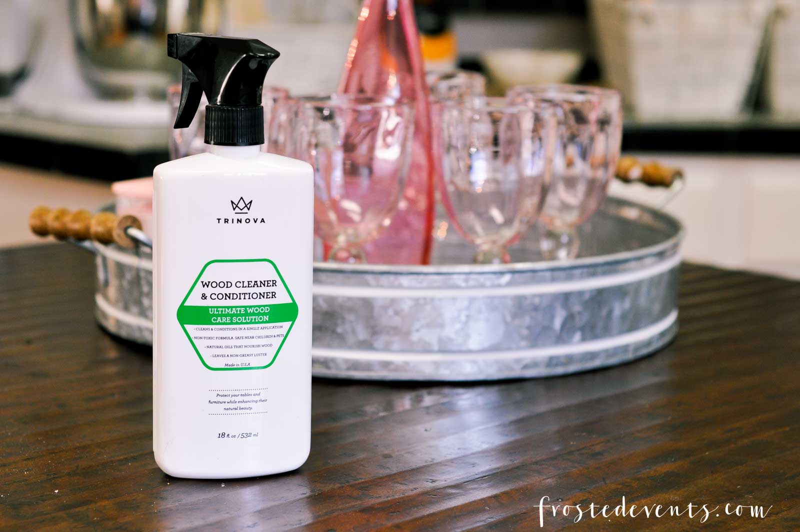 I’ve always had a hard time with finding a product I really liked to use on wood so I was especially excited to try this one. TriNova Wood Cleaner and Conditioner is a spray-on, wipe-off treatment that cleans and nourishes wood surfaces without leaving the usual filmy residue that I hate. It works on stained and unstained wood so you can use it on cabinets as well as to clean hardwood floors and furniture. TriNova prevents premature cracking and detoriation while keeping your wood floors and surfaces shiny, clean and dust-free.