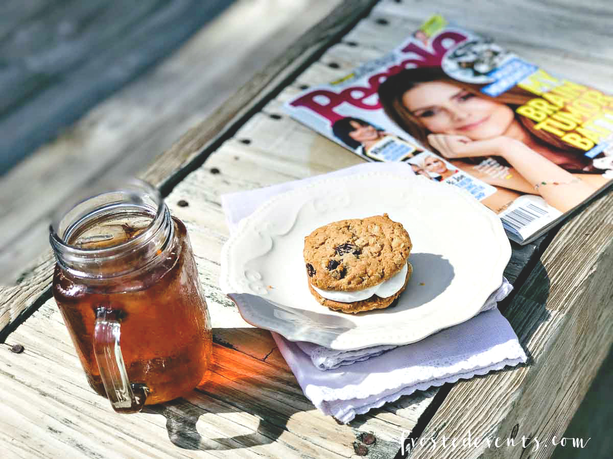 I like your setting! The lake, ice tea, a magazine and a delicious cookie. YUM! My kinda “me time”.