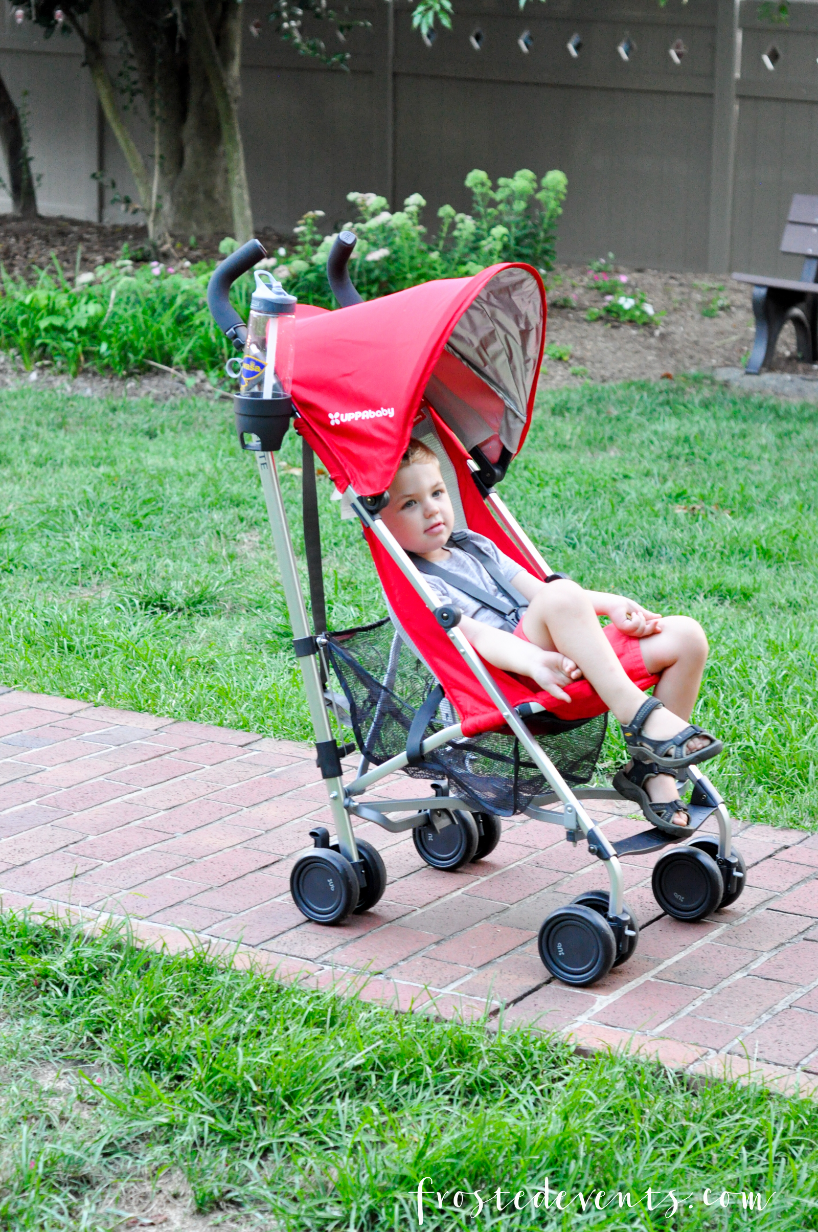 There’s plenty of storage space underneath to hold all your stuff and it’s easy to access. We’ve taken our UPPAbaby G-Lite stroller all around town and on a few vacations. It’s been such a lifesaver when Brady is tired and we can’t possibly carry him and our bags. Or just him, now that he’s over 30 lbs. The UPPAbaby is made for children 6 months to 55 lbs so we’ll be using it for the next few years. We store it in TravelSafe TravelBag to keep it safe and secure on the plane when we fly. It’s definitely coming on our trip to Disney World in October.