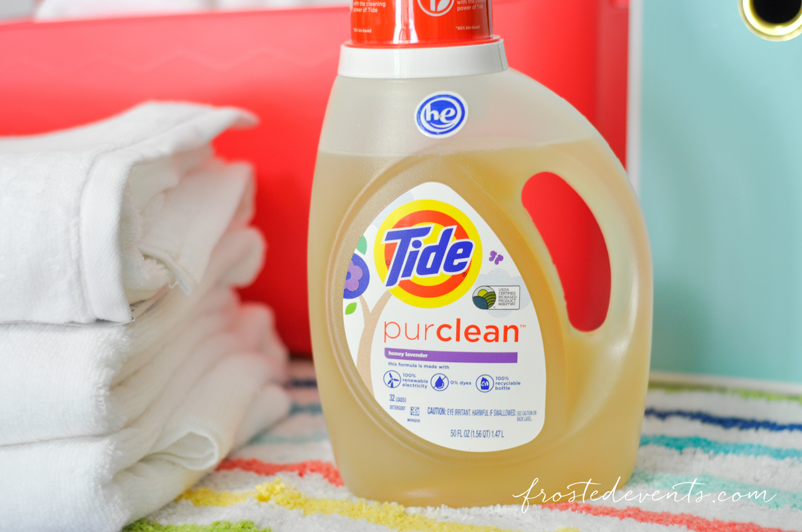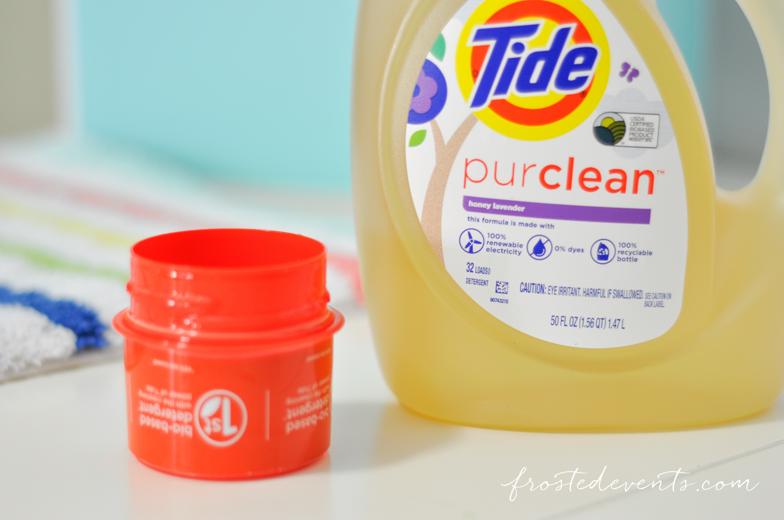 I was excited to see that Tide had just introduced a new product. Tide purclean is the first bio-based detergent with the cleaning power of Tide *65% bio-based.)Not only is it made with 100% renewable electricity, it’s also made at a  zero manufacturing wast to landfill site.
